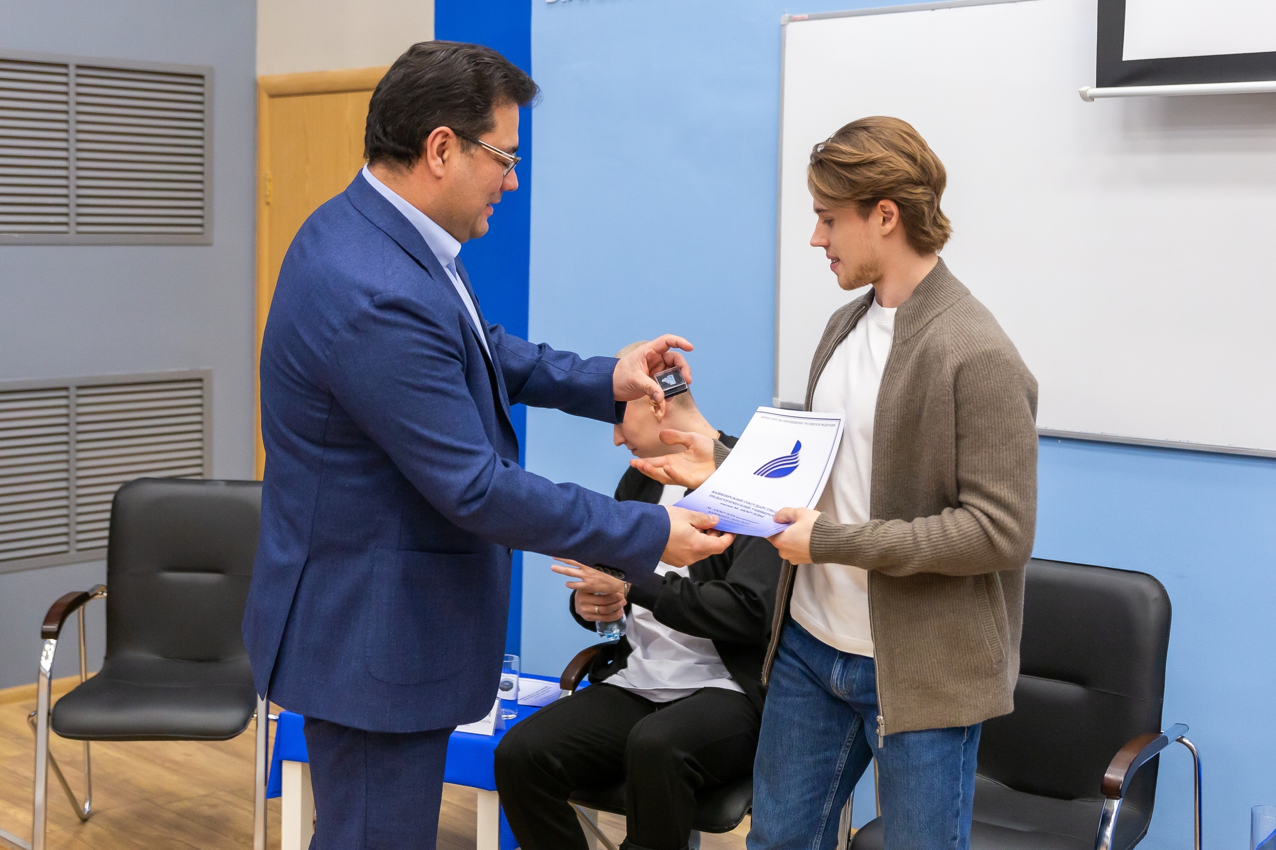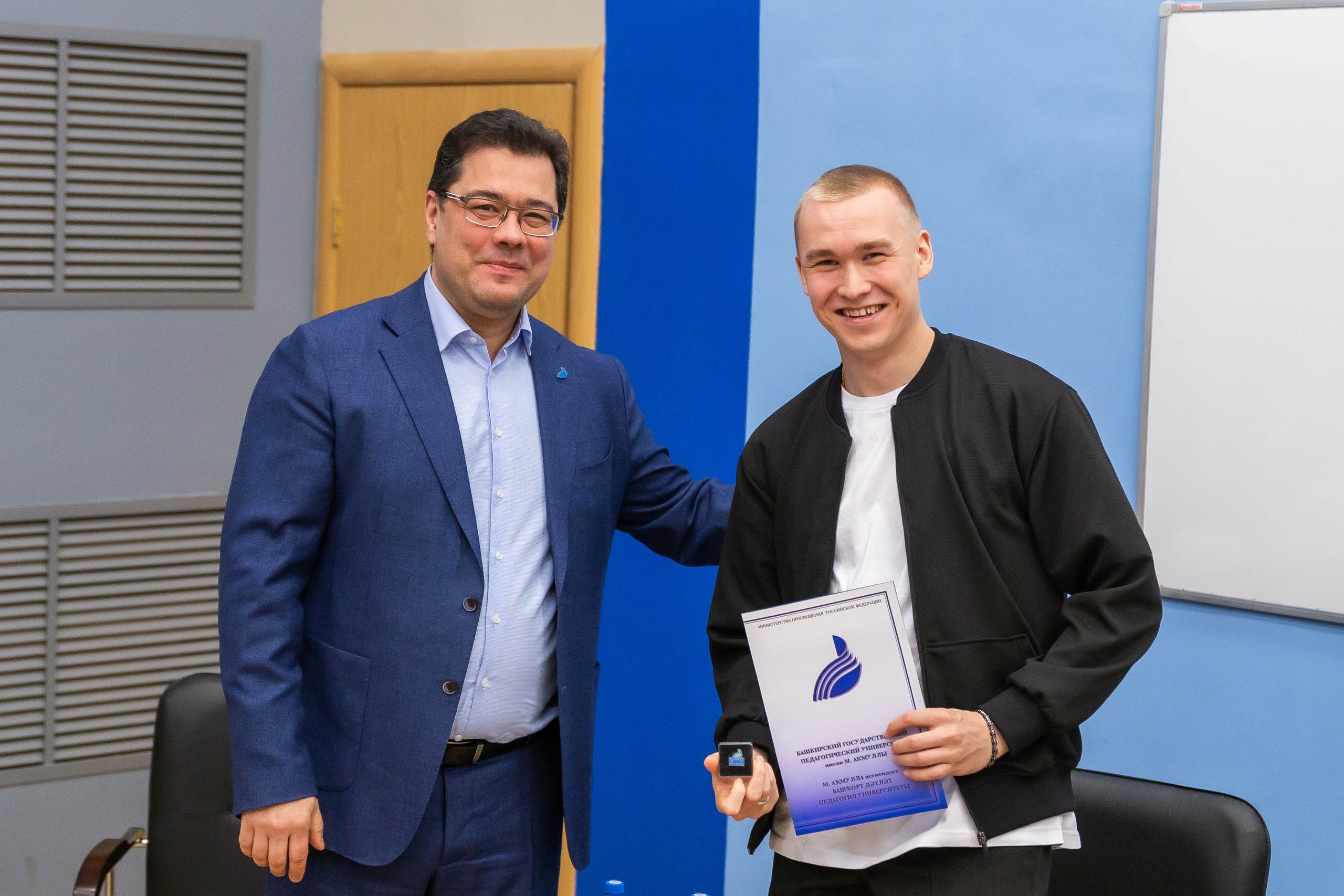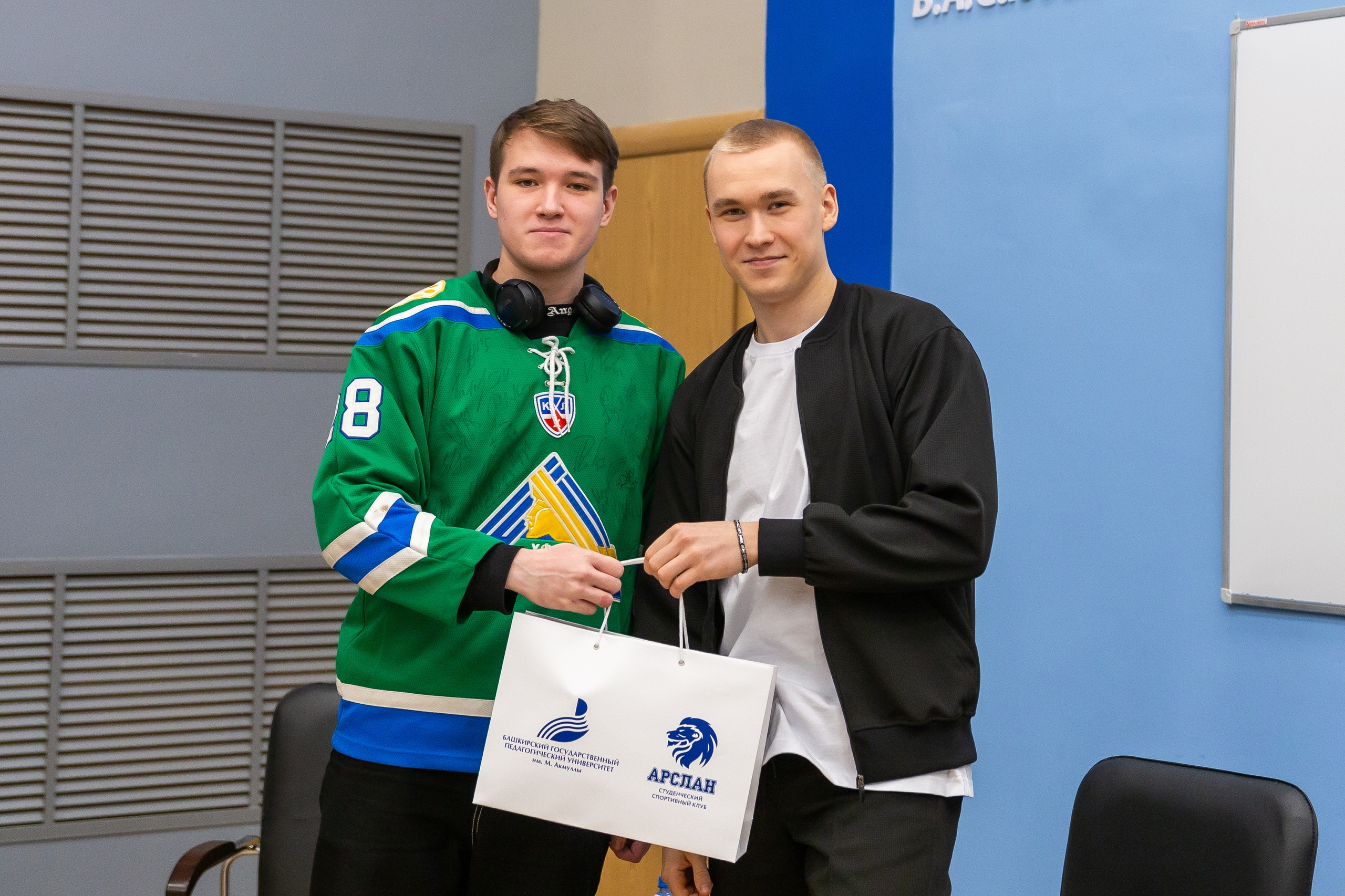 Ректор вуза Салават Сагитов рассказал, что сам с детства болеет за «Салават Юлаев», поблагодарил спортсменов за визит и наградил игроков клуба, студентов БГПУ им. М. Акмуллы Данила Алалыкина и Егора Сучкова почетными грамотами университета за активное участие в спортивной жизни вуза, высокие спортивные достижения и личный вклад в развитие спорта.