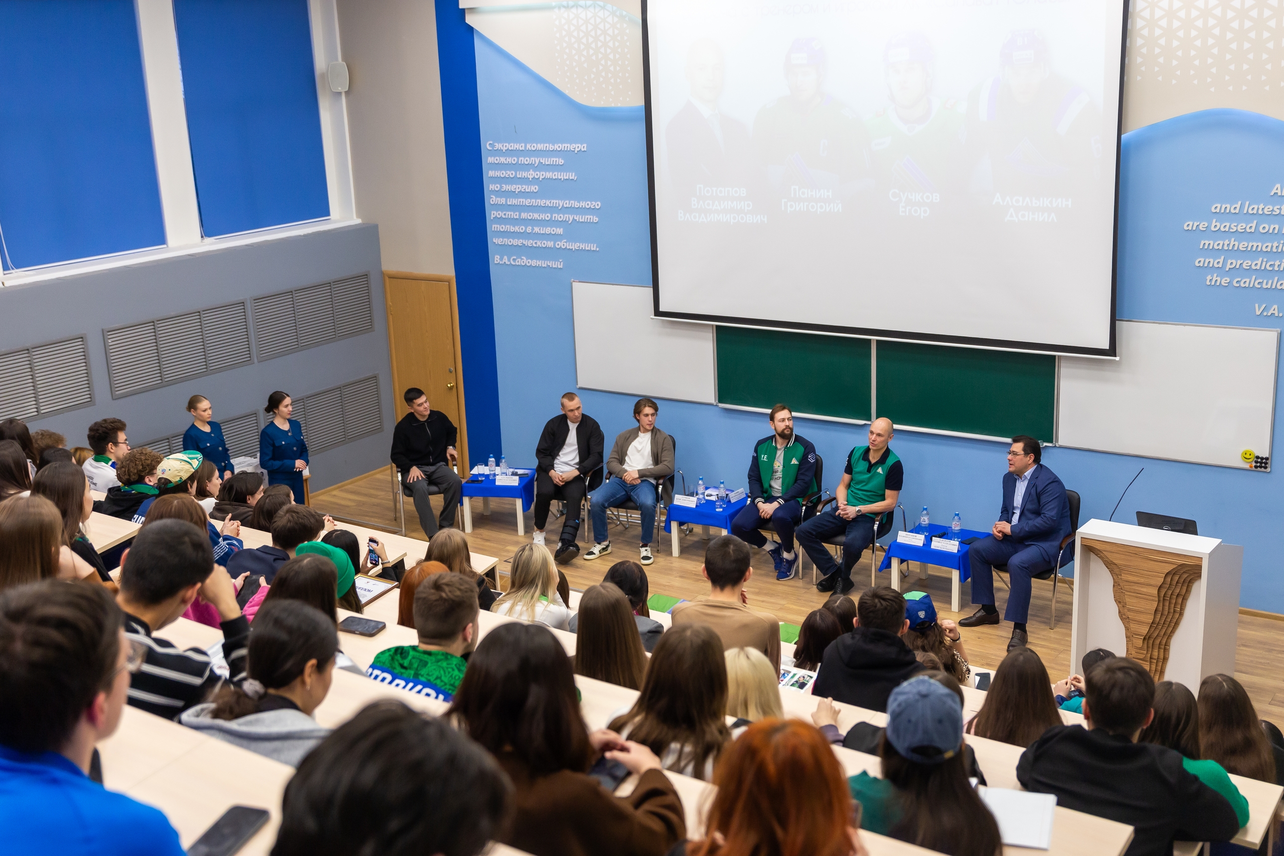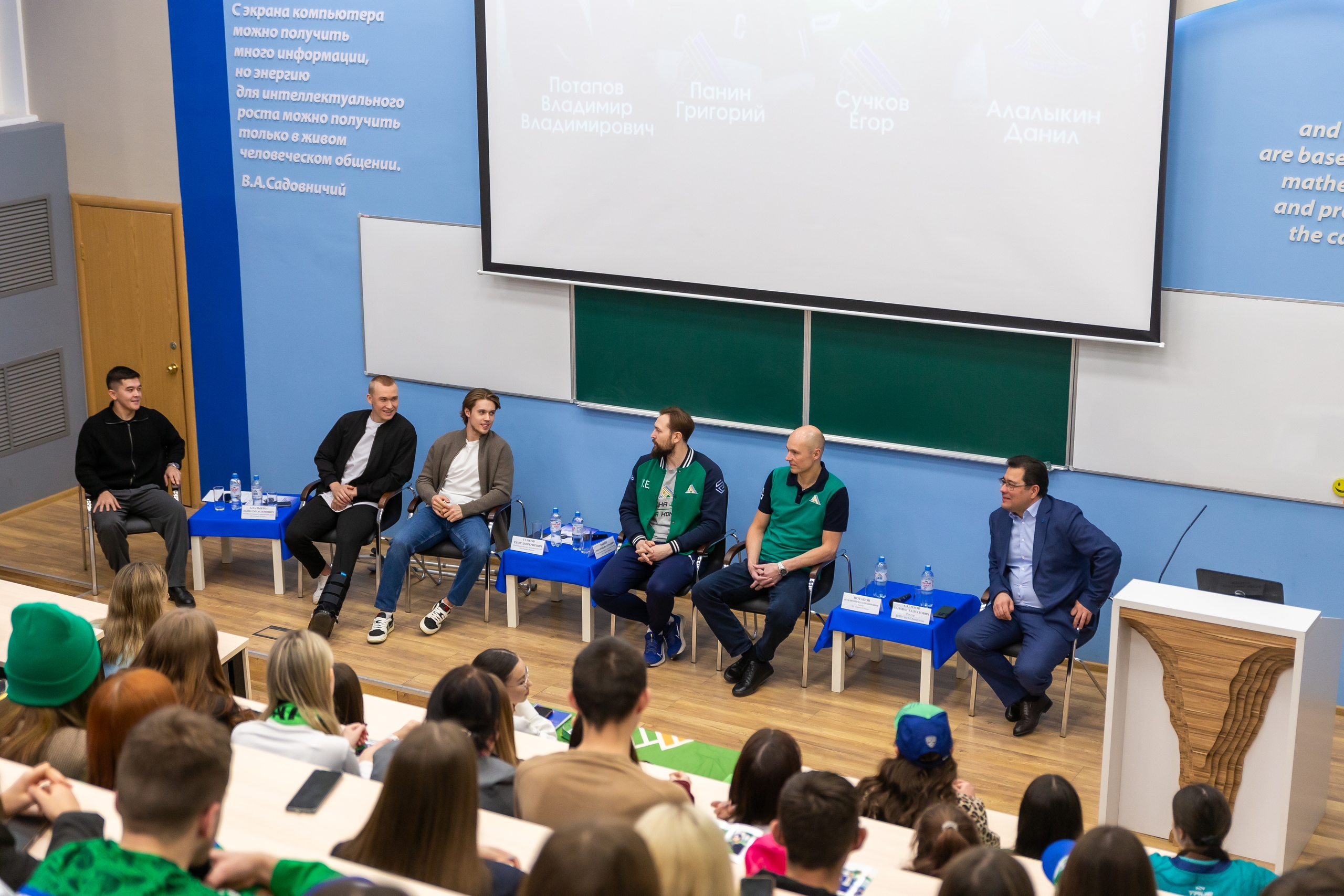 12 декабря в Акмуллинском университете состоялась встреча студентов с представителями хоккейного клуба «Салават Юлаев». В университет пришли игроки Данил Алалыкин и Егор Сучков, тренер Владимир Потапов и руководитель пресс-службы клуба Юрий Елисеев.