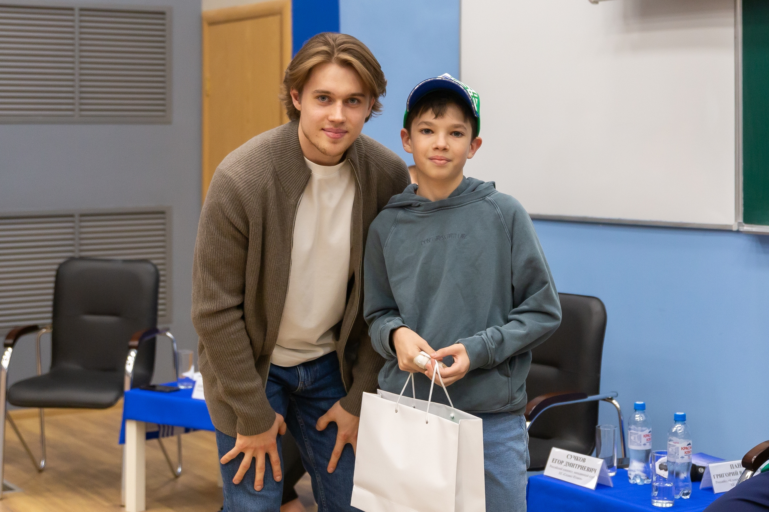 В конце встречи хоккеисты вручили памятные подарки авторам самых интересных вопросов.