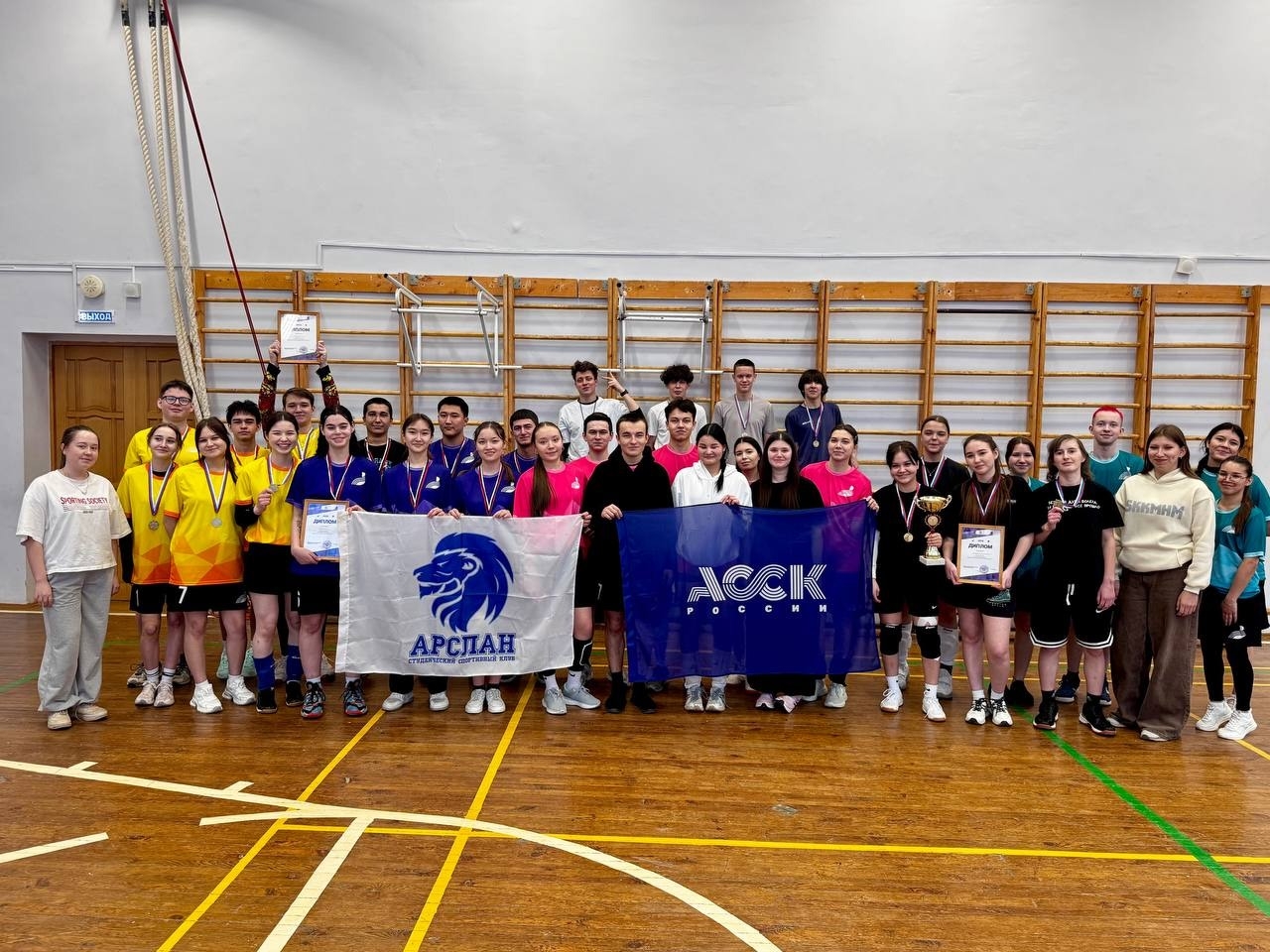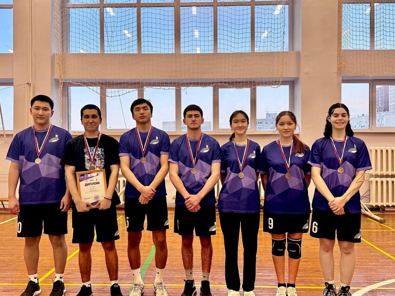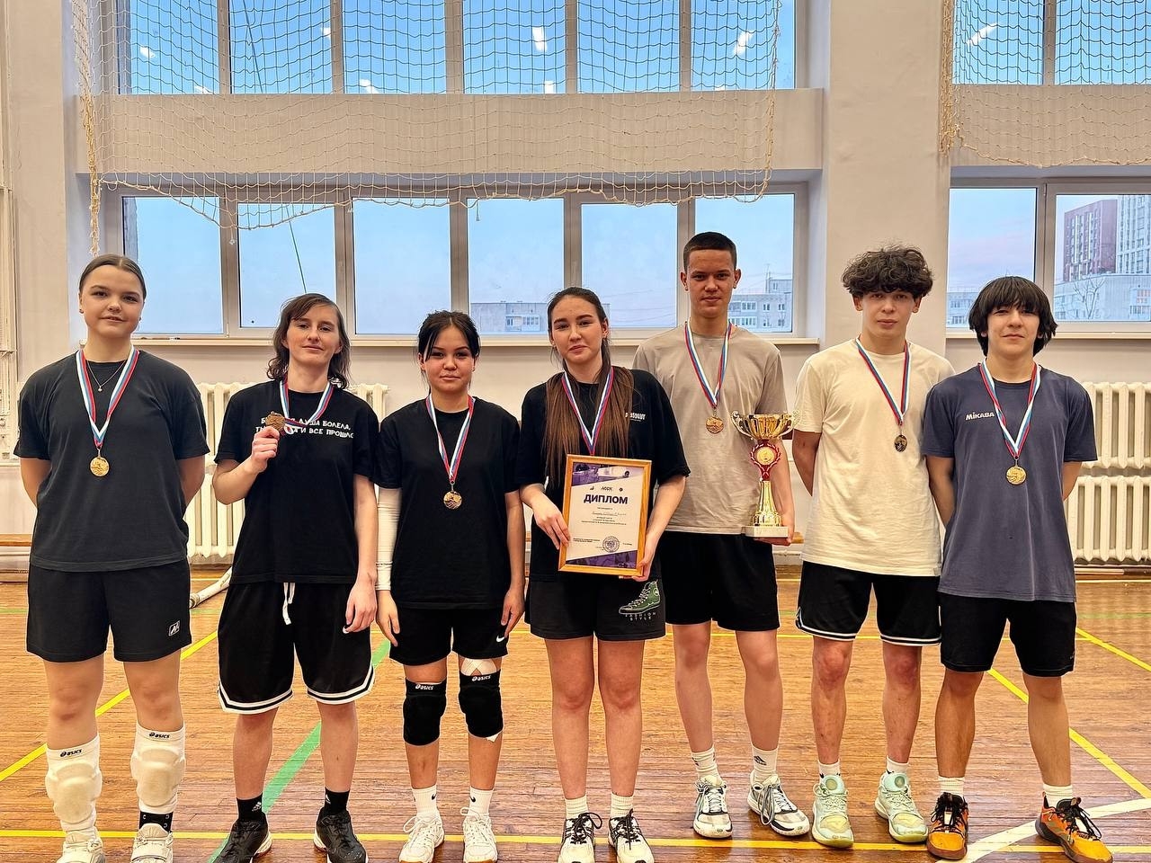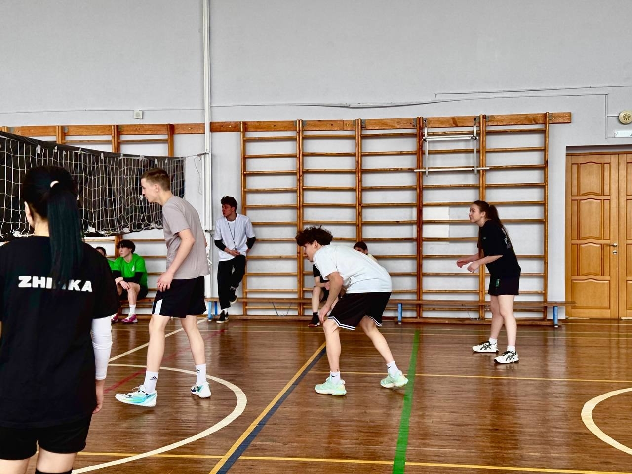 В спортзале царила атмосфера азарта, каждая команда стремилась победить и боролась до самого конца.