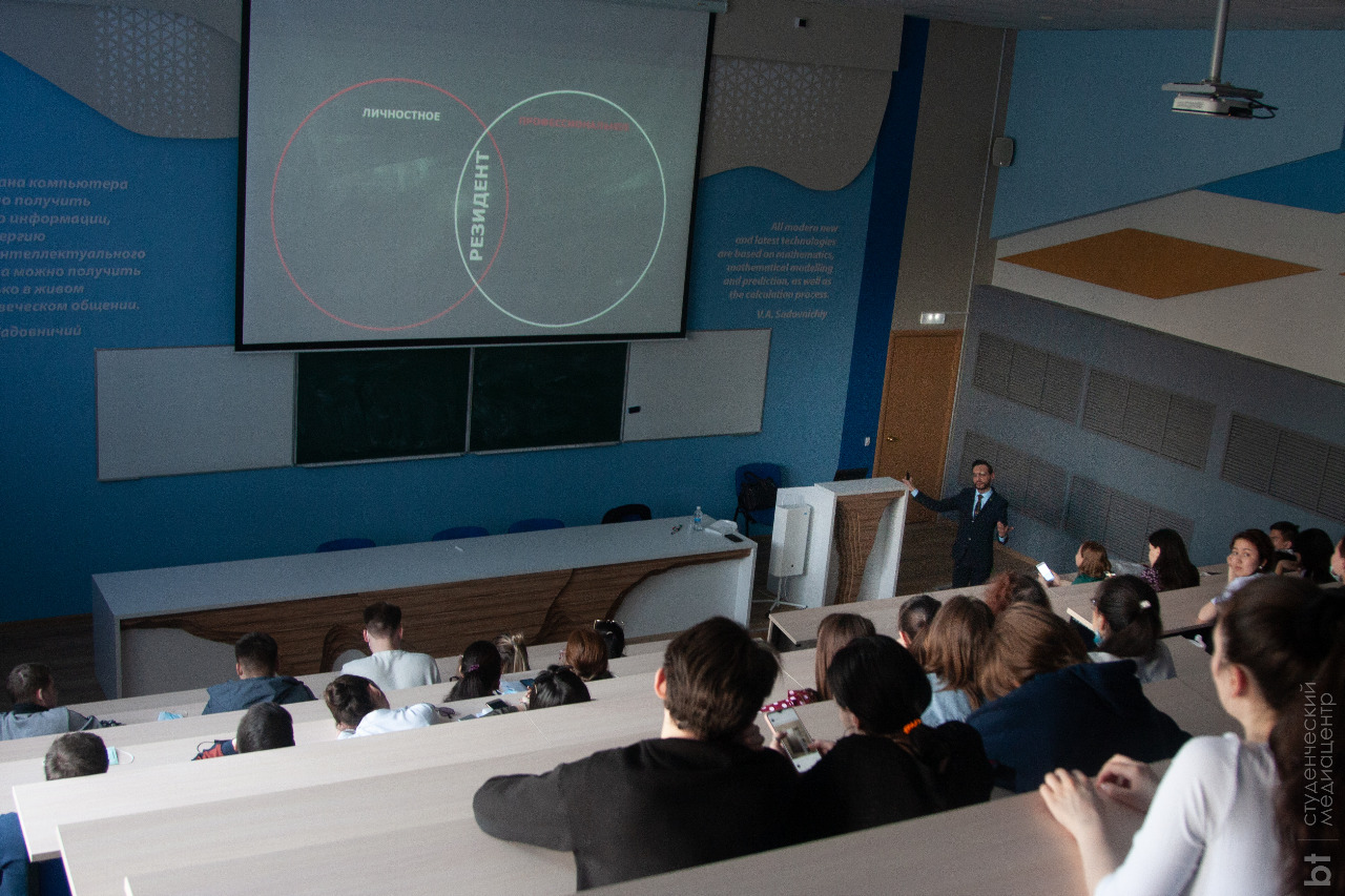 В ходе лекции спикер поднял проблему трудоустройства молодых специалистов и их самореализации в педагогической профессии. Согласно данным статистики, ежегодно педагогические вузы страны набирают 73647 студентов на  бюджетные места. Но до последнего курса доходит половина, а из той половины, которая заканчивает вуз, ровно 30% отправляется до школы. Сергей Сергеевич дал ценные советы будущим учителям: