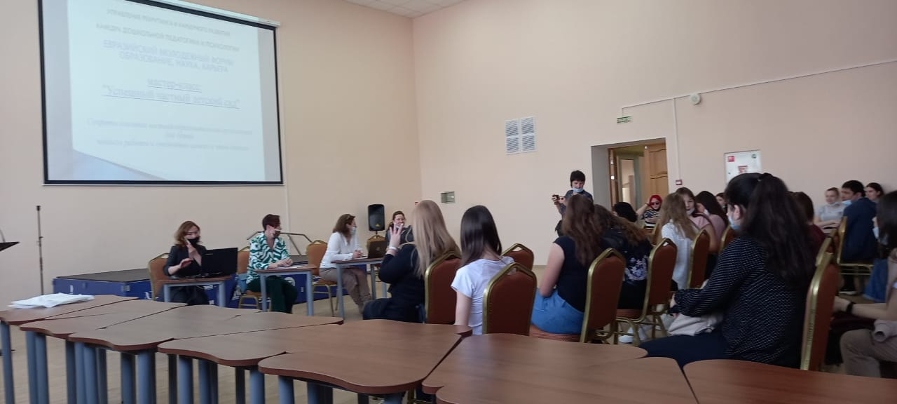 В рамках Программы ЕВРАЗИЙСКОГО МОЛОДЕЖНОГО ФОРУМА: ОБРАЗОВАНИЕ, НАУКА, КАРЬЕРА 14 апреля 2021г. Управление рекрутинга и карьерного развития БГПУ им. М. Акмуллы и  кафедра дошкольной педагогики и психологии  провели мастер-класс: "Успешный частный детский сад":  Секреты создания частной образовательной организации для детей, нюансы работы и «подводные камни» в этом бизнесе. В программе мастер-класса выступили выпускники кафедры дошкольной педагогики и психологии, руководители образовательных организаций г. Уфы:
