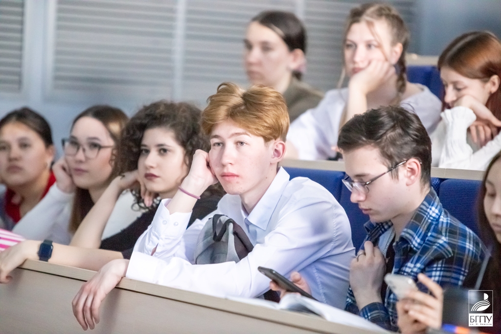 Артем Баянов в своем выступлении рассказал студентам о многогранности профессии учителя, разобрал тонкости и должностные обязанности. Он привел примеры известных и знаменитых людей, которые, получив профессию учителя, стали актерами кино и театра, телеведущими, спортсменами, психологами и др. На примере самопрезентации Артем Равилевич рассеял мифы об учительстве.