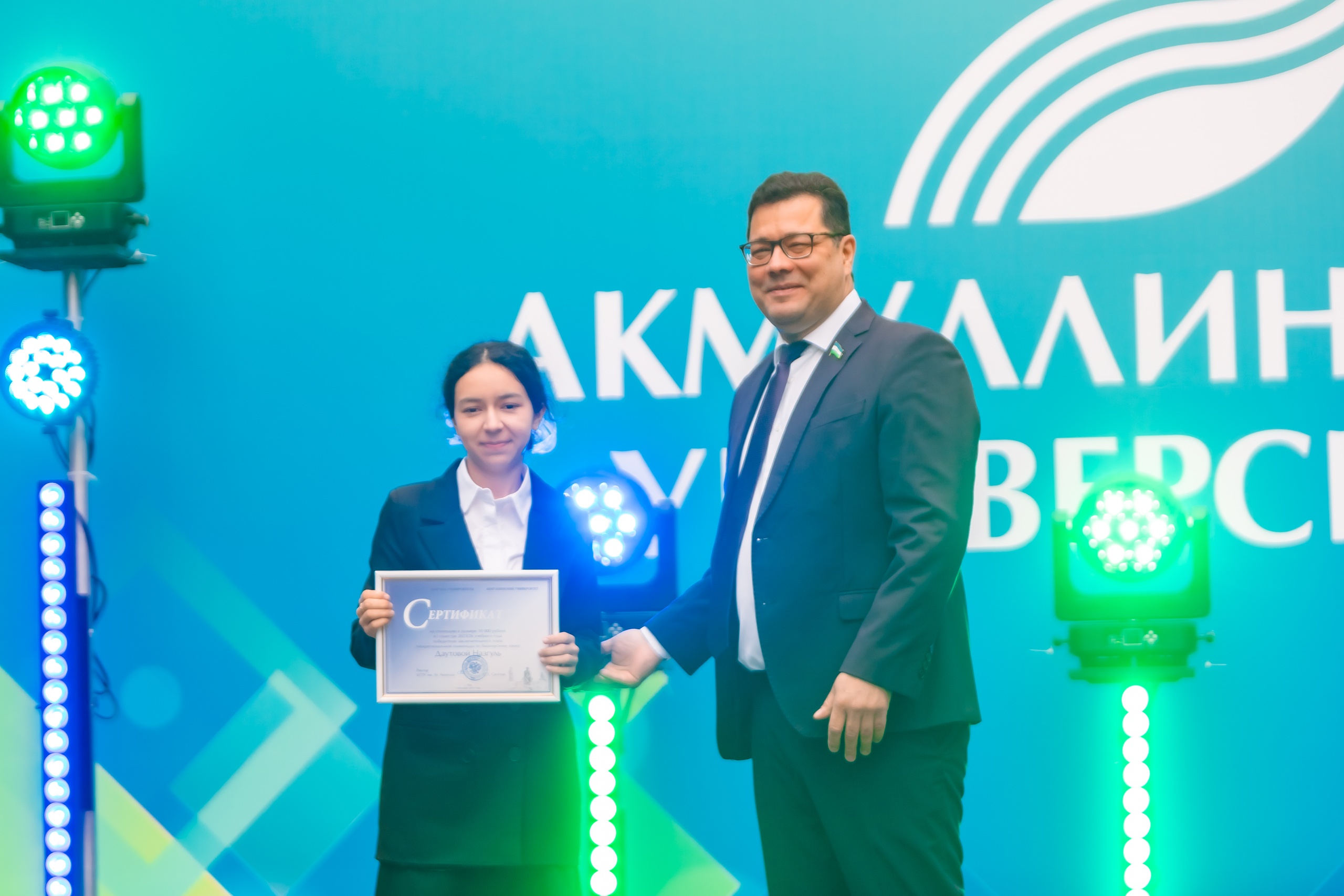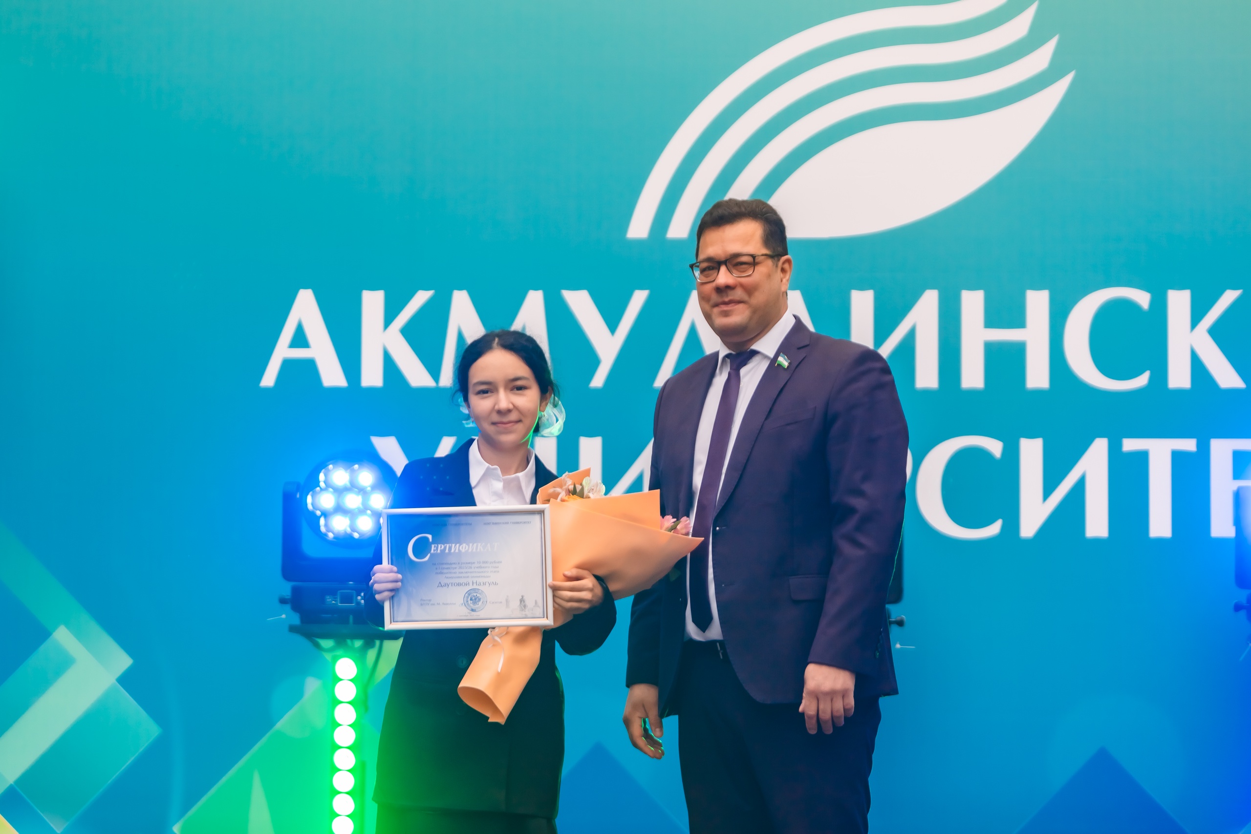 На торжественном мероприятии, посвященном Дню знаний и началу учебного года, ректор БГПУ им. М. Акмуллы Салават Сагитов вручил лучшим первокурсникам 2025 года сертификаты на получение повышенной стипендии в течение 1 года обучения.