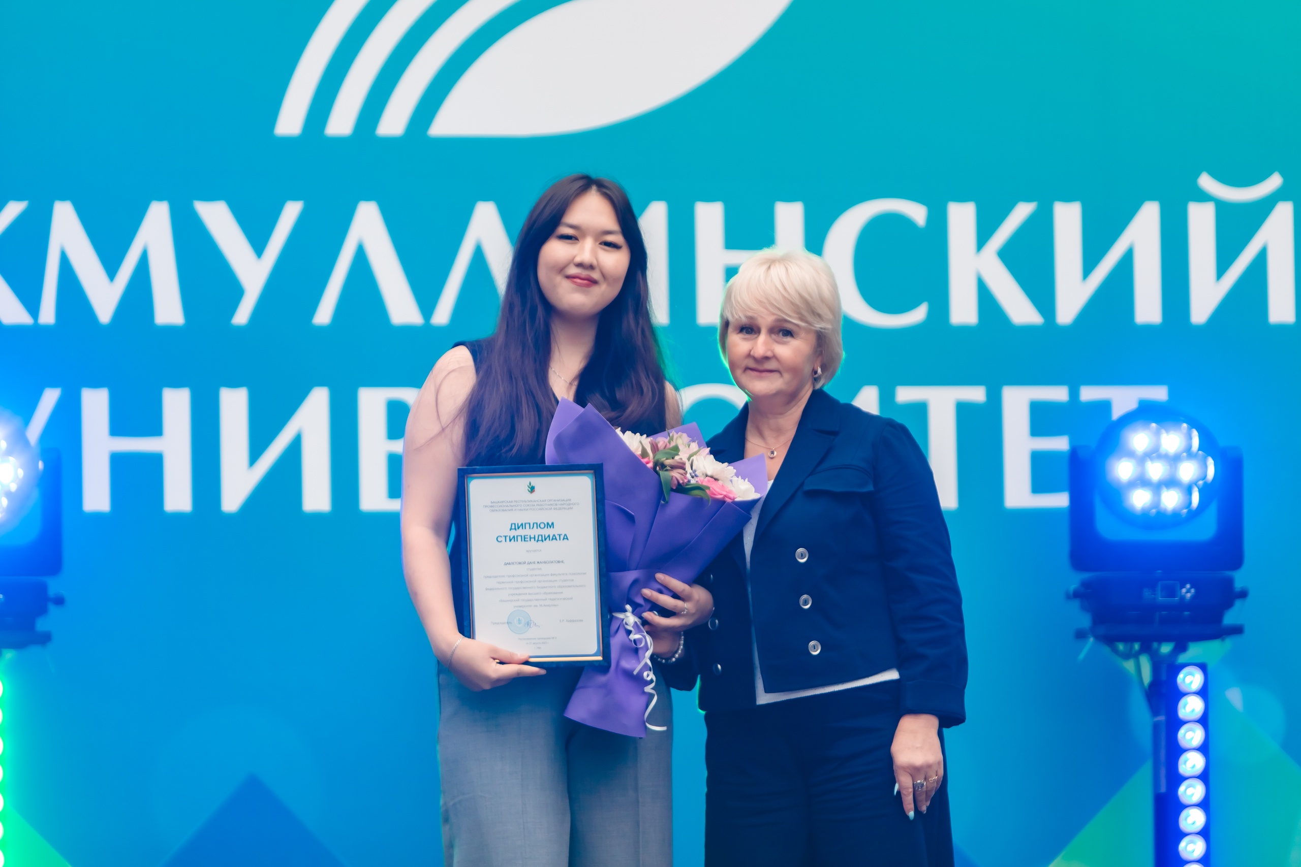 Также на праздничном мероприятии председатель Башкирской Республиканской организации Профсоюза образования Елена Хаффазова наградила профсоюзных активистов вуза. Почетную грамоту Министерства просвещения России за многолетний добросовестный труд и значительные заслуги в сфере образования получила председатель первичной профсоюзной организации студентов Ирина Церяпкина. Специальным дипломом стипендиата Республиканского комитета общероссийского профсоюза образования за особые достижения в общественной деятельности награждена студентка 4 курса факультета психологии Дана Давлетова.