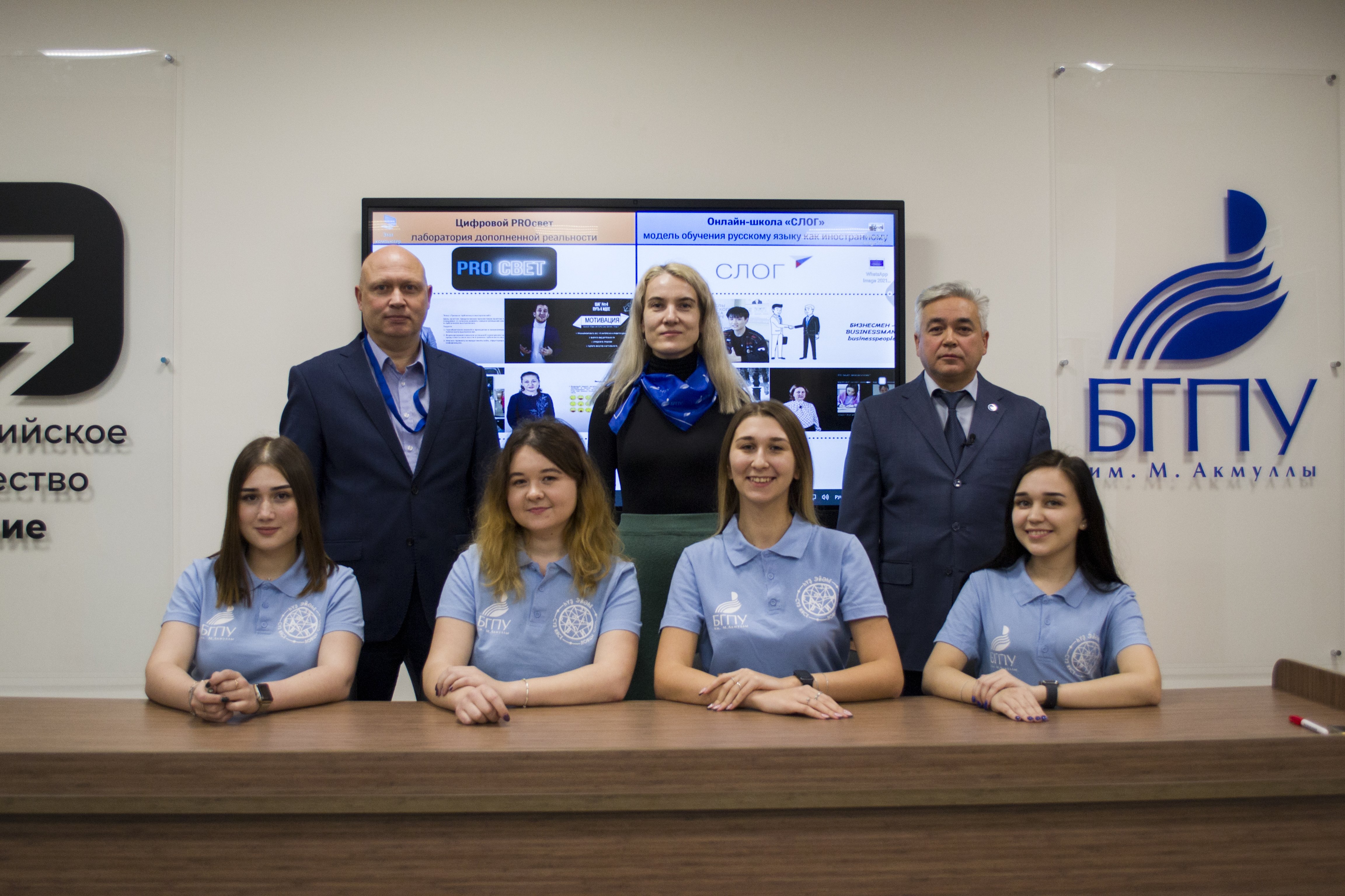 В формате видеоконференцсвязи состоялось подключение технопарков из вузов страны, в том числе из БГПУ им. М. Акмуллы. На связь с Министром просвещения из лектория Российского общества «Знание» вышли первый проректор по стратегическому развитию Алмаз Мустаев, руководитель подготовительного отделения для иностранных граждан, доцент Центра изучения и продвижения русского языка Татьяна Капишева, а также студенты-волонтеры родных языков.