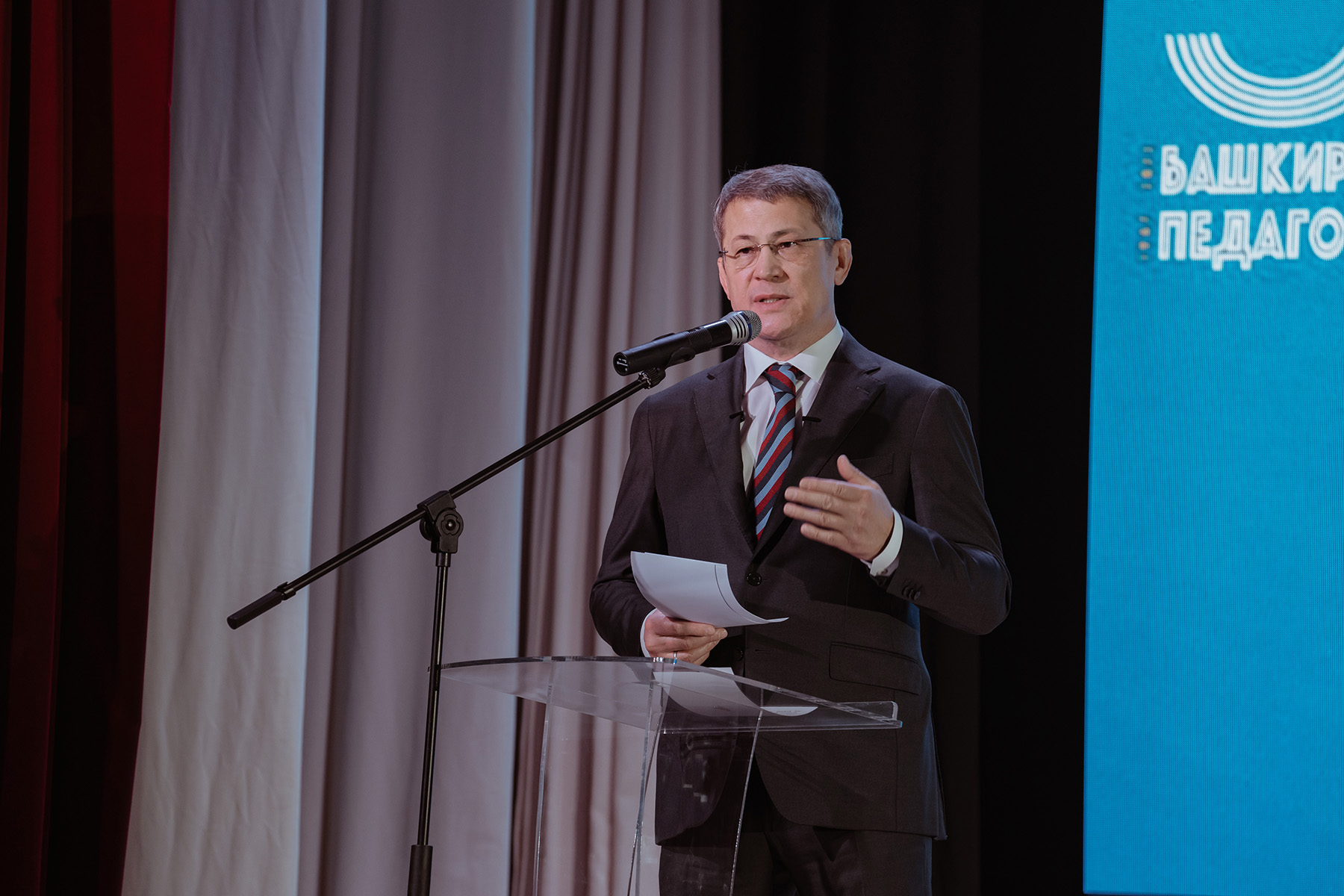 – Ваш вуз носит имя великого башкирского просветителя Мифтахетдина Акмуллы. Он мечтал о том времени, когда тысячи мудрых учителей приведут народ к знаниям и науке, а наш край – к процветанию. Сегодня мы можем сказать, что эти слова стали реальностью. Десятки тысяч выпускников Башкирского государственного педагогического университета обучают огромную армию школьников республики, передают знания нашим детям и молодёжи. Это во многом заслуга вашего коллектива, – сказал Радий Хабиров. – Золотыми буквами в историю вуза вписаны имена его руководителей – Марвана Янгировича Янгирова, Рустема Гумеровича Кузеева, Эдуарда Шайхулловича Хамитова, Раиля Мирваевича Асадуллина. Каждый ректор внёс огромный вклад в создание одного из ведущих университетов России, которым сегодня стал БГПУ. Эту эстафету продолжает нынешний ректор вуза Салават Талгатович Сагитов.