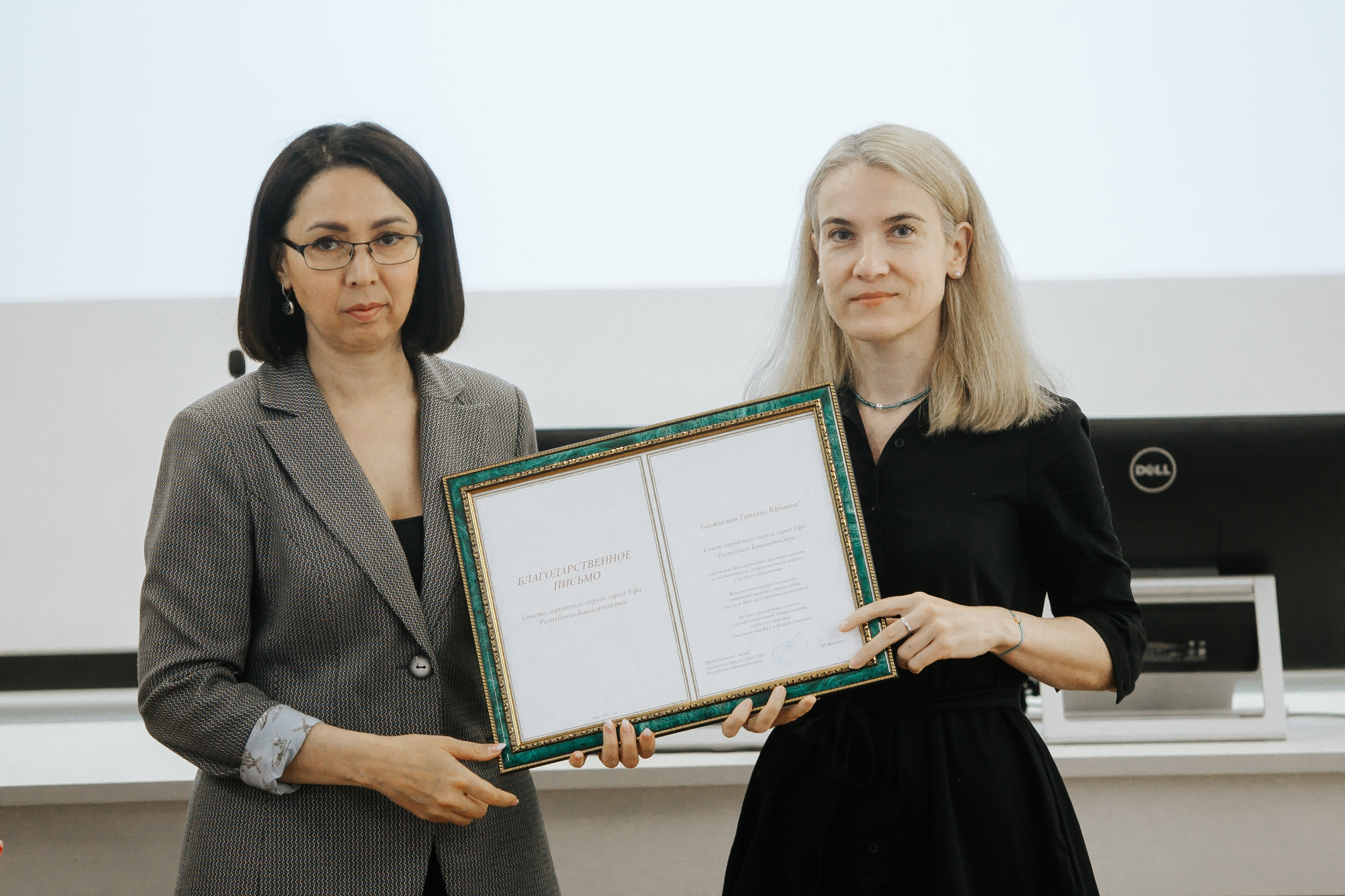 Благодарственное письмо Совета г.Уфы вручена доценту института филологического образования и межкультурных коммуникаций Татьяне Капишевой.