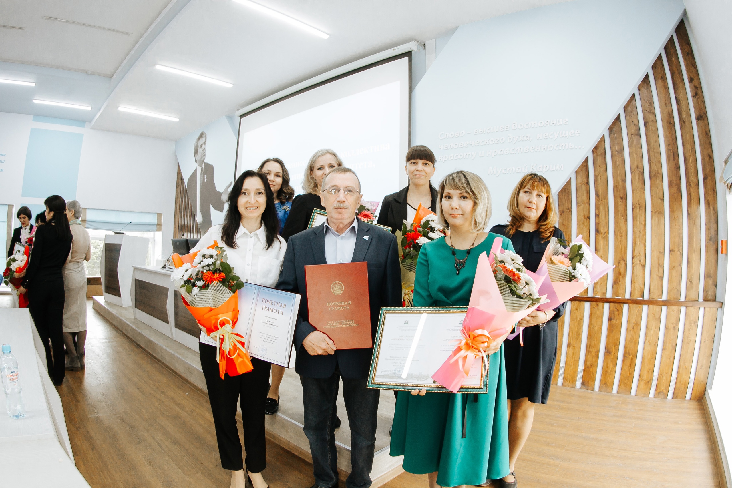 Почетные грамоты Министерства семьи, труда и социальной защиты РБ вручены старшему преподавателю института педагогики Расиме Дильмухаметовой, педагогу-психологу департамента по воспитательной работе и молодежной политике Светлане Макаровой, начальнику отдела социальной и психологической поддержки обучающихся Лайсан Мирсаетовой, ведущему специалисту учебно-методического департамента Галие Мухаметовой, ведущему специалисту департамента по общим и правовым вопросам Эльвире Салиховой.