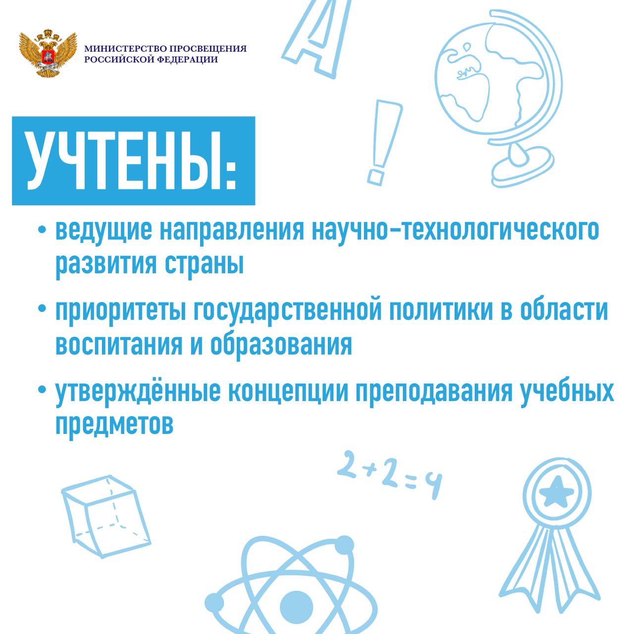 При обновлении ФГОС среднего общего образования учтены ведущие направления научно-технологического развития страны, приоритеты государственной политики в области воспитания и образования подрастающих поколений, утвержденные концепции преподавания учебных предметов, а также универсальные кодификаторы проверяемых элементов содержания, распределенных по классам, и требований к результатам освоения основных образовательных программ.