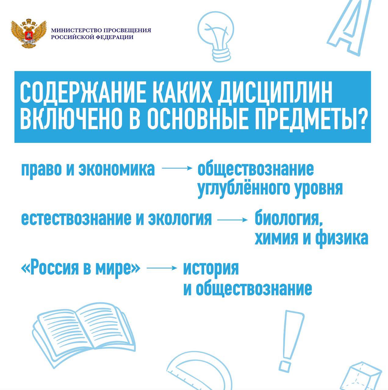 Таким образом, ни один из предметов не ушел из школьной программы. Более того, образовательная организация теперь вправе включить в учебные планы любые дополнительные учебные предметы и курсы по выбору обучающихся в соответствии со спецификой профиля и возможностями учреждения.