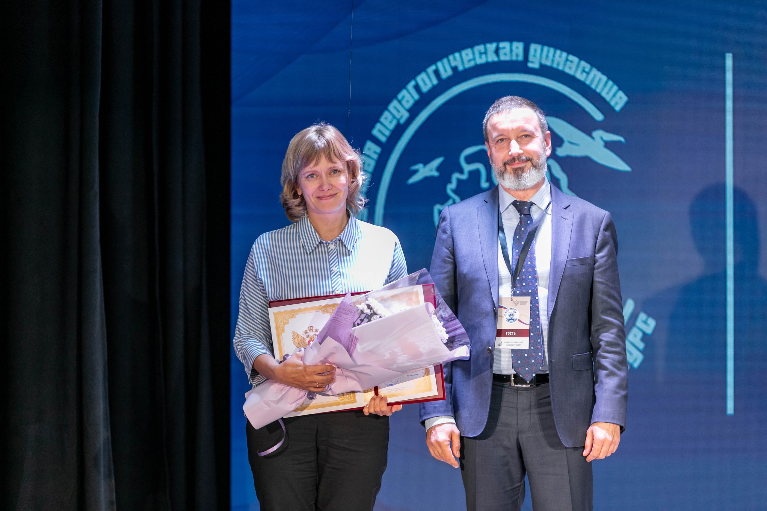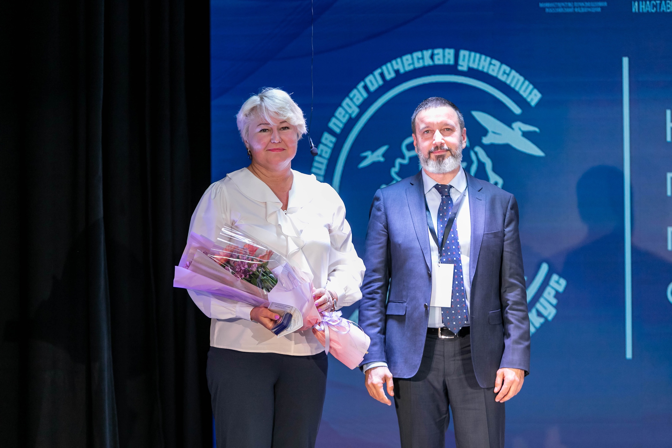Слова приветствия и поздравления прозвучали от заместителя директора Департамента подготовки профессионального развития и социального обеспечения педагогических работников Министерства просвещения России Александра Калягина.
