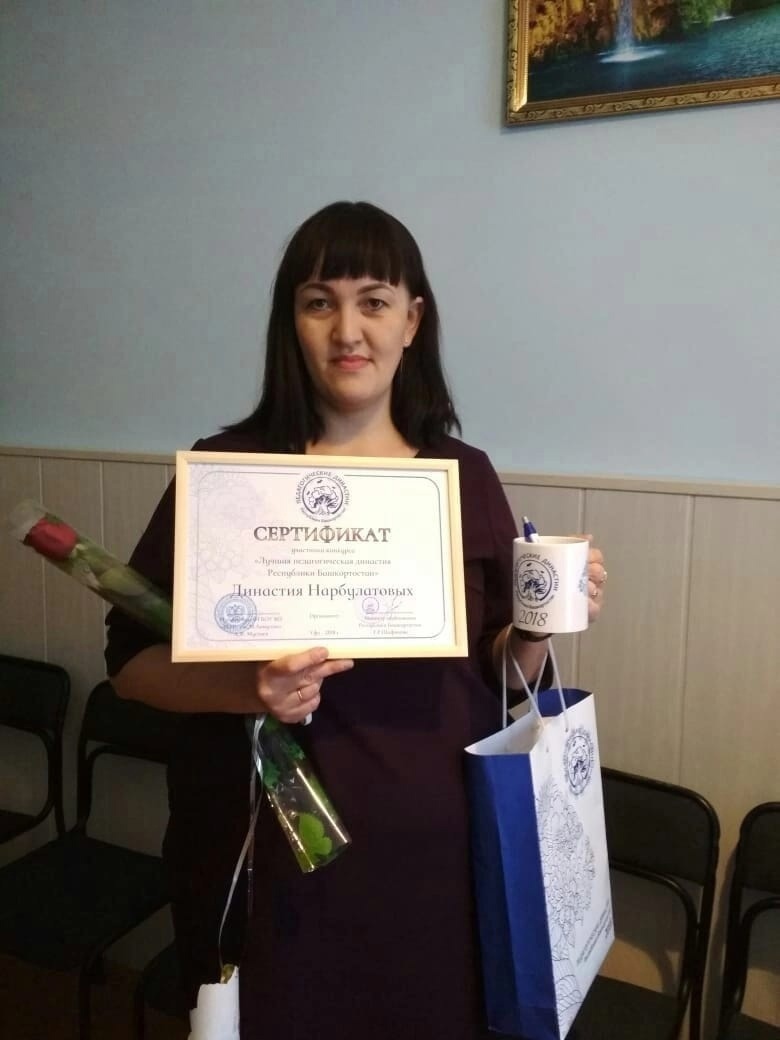Представители нашей династии работали и работают в системе образования Оренбургской области и Республики Башкортостан. Родоначальником нашей династии является мой отец, Нарбулатов Ахсян Хайбуллович, учитель русского языка и литературы, истории, директор школы. Педагогический стаж династии Нарбулатовых составляет 588 лет.