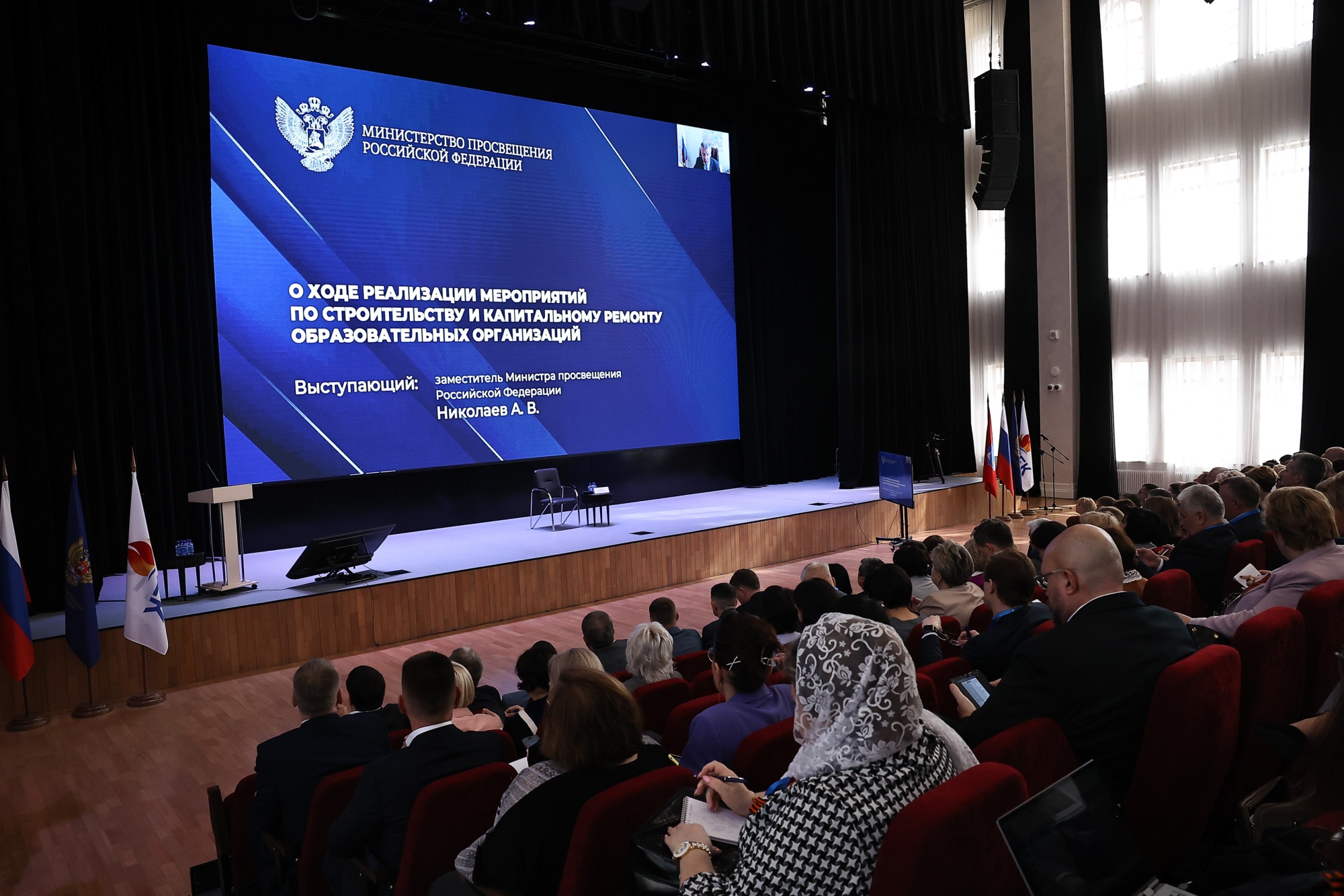 В детском центре «Корсунь», филиале Международного детского центра «Артек», состоялось пленарное заседание Всероссийского совещания для руководителей исполнительных органов государственной власти субъектов Российской Федерации, ответственных за управление в сфере образования. В мероприятии приняли участие заместитель Председателя Правительства России Дмитрий Чернышенко и Министр просвещения РФ Сергей Кравцов.