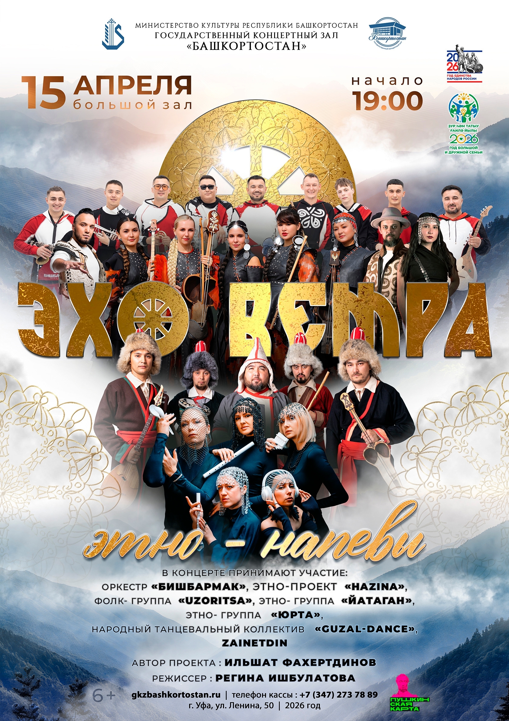 Концертный зал «Башкортостан» приглашает на концерт «Эхо ветра: этно-напевы»