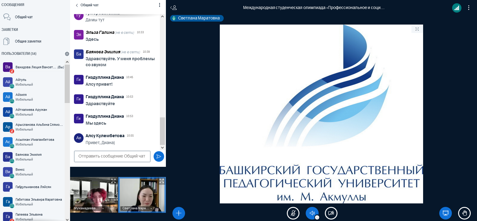 21 апреля 2022 года в БГПУ им. М. Акмуллы прошла международная студенческая олимпиада «Профессиональное и социальное образование», которая объединила более 50 человек из разных высших учебных заведений России и стран СНГ. Участниками стали студенты из Башкирского государственного педагогического университета имени М. Акмуллы, а также Актюбинского университета им. С. Баишева.