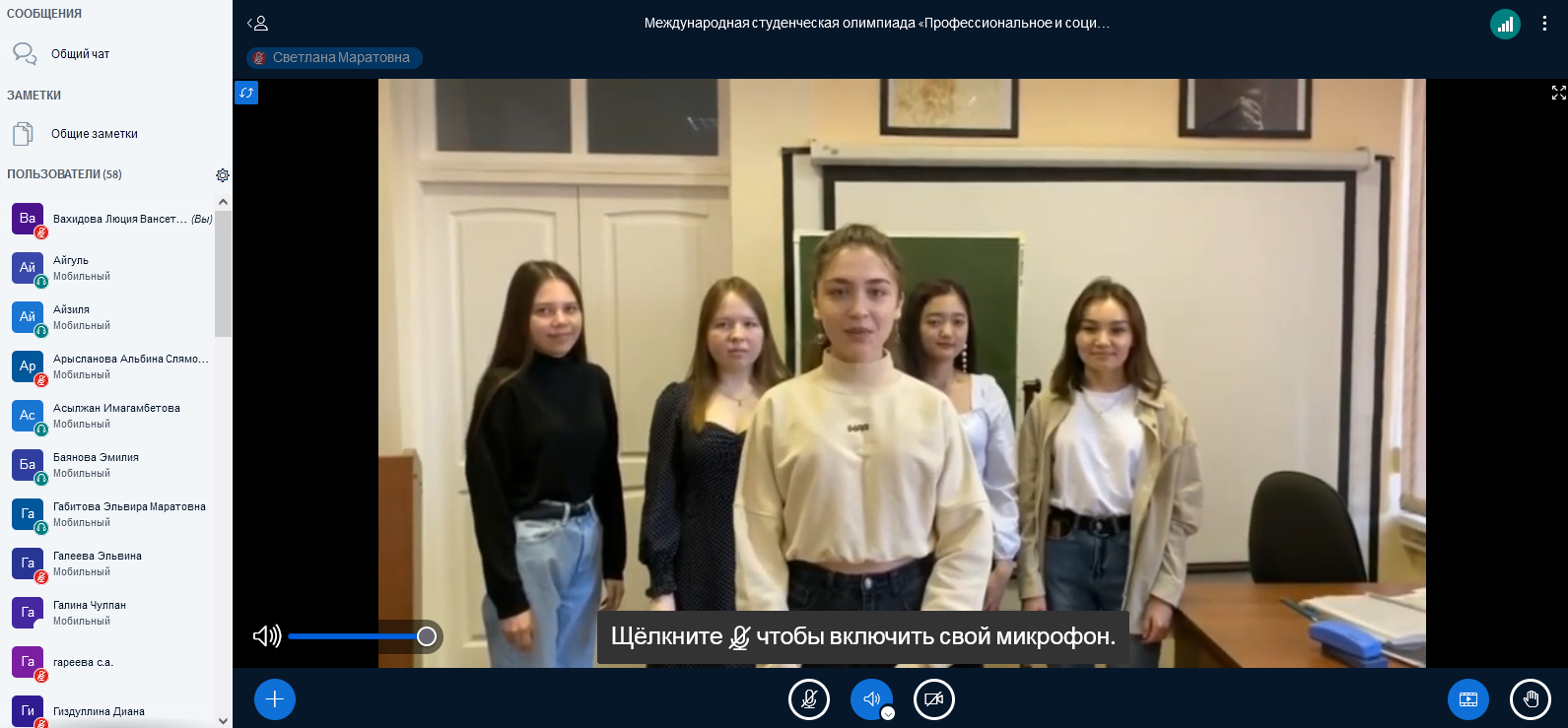 -    студентка 3 курса по направлению «Педагогика и психология» (Актюбинский университет им. С. Баишева): Муталиефова Жанна Русланқызы.