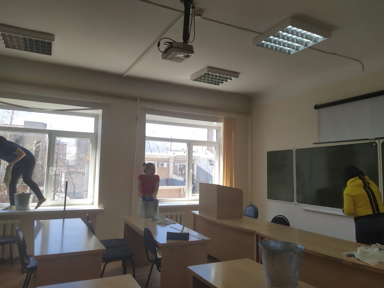 Благодаря теплой и солнечной погоде, хорошему и веселому настроению, ребята смогли сделать учебные аудитории и территорию уютной, красивой, и чистой.