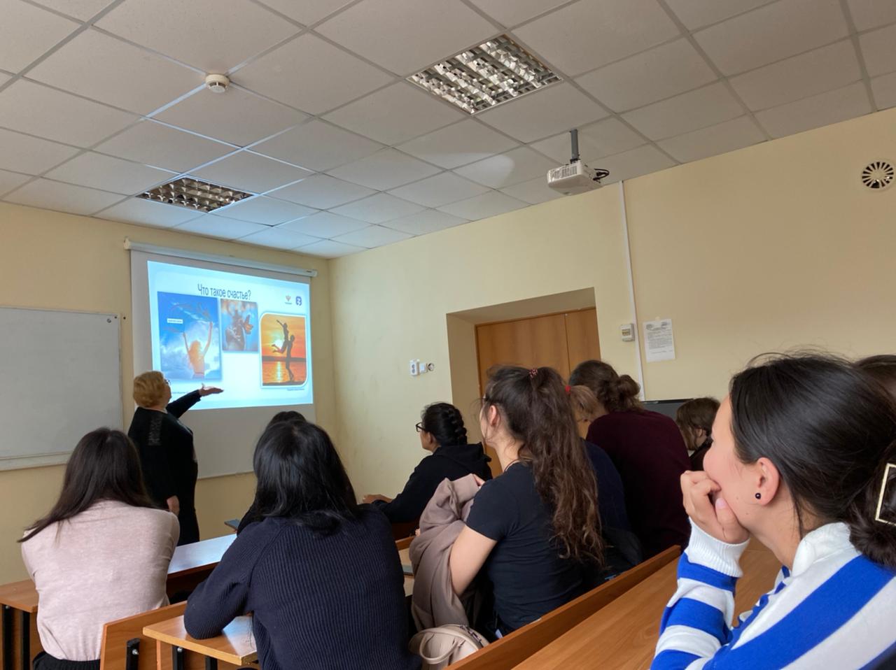 В рамках всероссийской акции "Поделись своим знанием" 6 октября 2022 года, для студентов группы ППОСП-11-22 была проведена лекция на тему "Счастье как ресурс человеческой жизни".