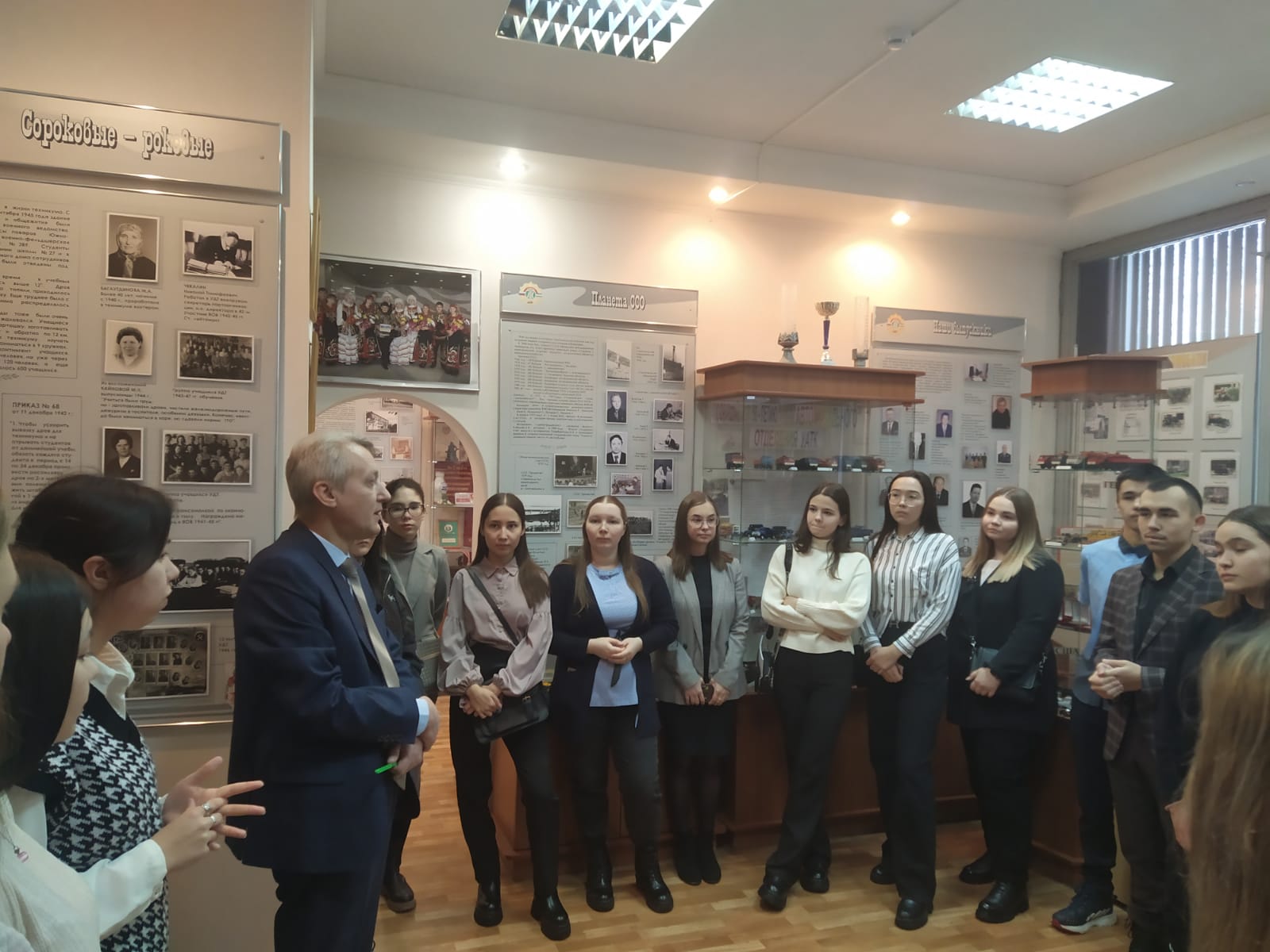 Далее студенты посетили музей истории УАТК, где заведующий музеем Курочкин Ю.А. рассказал историю развитию колледжа.