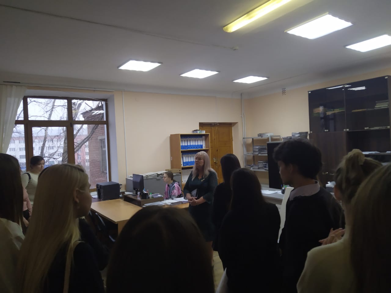 Преподаватель колледжа Схоменко Н.Н. встретила и провела увлекательную экскурсию по колледжу, ознакомила студентов с историей и жизнью колледжа. Студенты посетили занятие преподавателя колледжа, задавали вопросы.