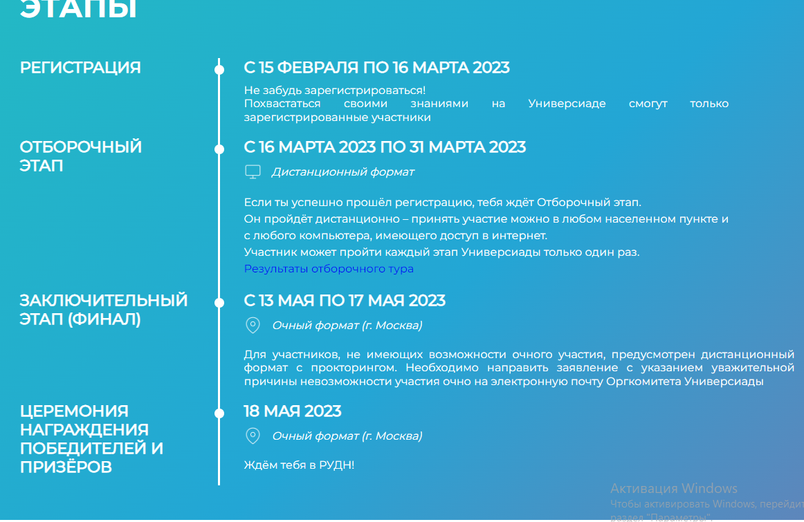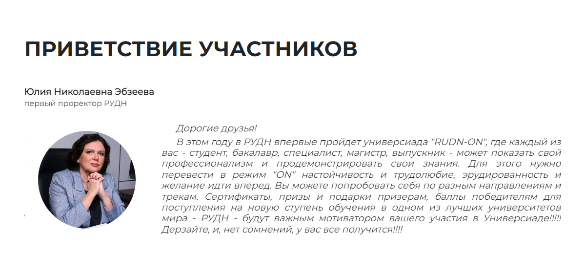 Опубликованы результаты отборочного этапа универсиады РУДН  «RUDN-ON».  От души поздравляем  финалистов этапа по направлению Психолого-педагогическое образование,  студентку 4 курса направления подготовки Психолого-педагогическое образование , направленность (профиль) «Психология и социальная педагогика» Абдееву Руфину Ринатовну и выпускницу этой же программы Скрипченко Наталью Викторовну.  Обе студентки набрали максимально возможные 100 баллов, обогнав десятки бакалавров и магистрантов из вузов Москвы, Санкт-Петербурга, Свердловской, Воронежской, Ростовской, Новосибирской  областей, Хабарвского края и других регионов России. Всего  в отборочном этапе по данному направлению принимало участие 102 студента.   Впереди – финал, пожелаем студентам Акмуллинского университета победы!