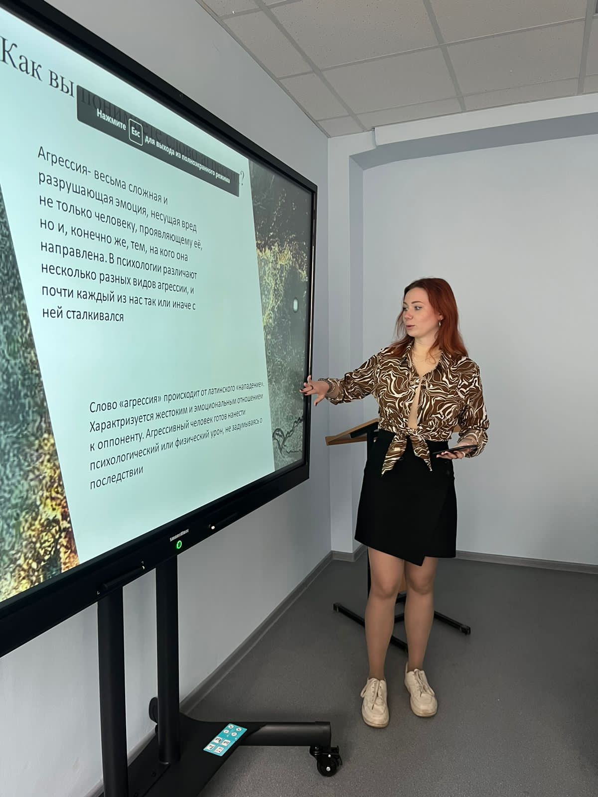 2 октября 2023 года для студентов 1 курса направления подготовки «Психолого-педагогическое образование», направленность (профиль) «Психология и социальная педагогика» было проведено воспитательное мероприятие на тему: "Агрессия среди нас". Мероприятие было подготовлено и проведено Жилиной Екатериной - студенткой 1 курса Института педагогики.