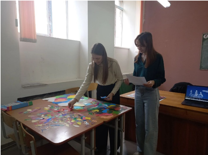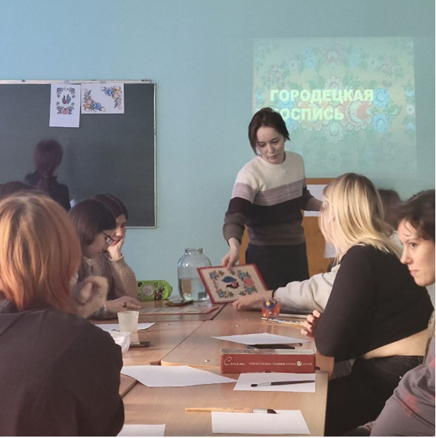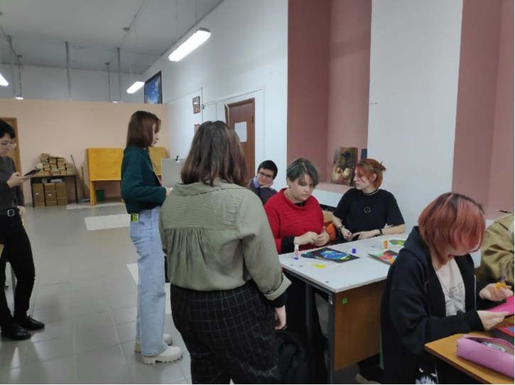 Студенты 3 курса БГПУ им.М.Акмуллы, обучающиеся на направлении Профессиональное обучение (по отраслям), направленность (профиль) «Декоративно-прикладное искусство и дизайн» в рамках производственной практики, под руководством ст.преподавателя Габидуллиной С.М., провели профориентационное занятие на тему: «Композиция как основа дизайна. Мастер-класс по созданию композиции из геометрических фигур» (Макушкина А.Ю., Уразаева Ю.А., Гаврюк О.Н.) и на тему: «Городецкая роспись» (Чернышова А.С., Алексеева В.Ю.) для обучающихся Уфимского профессионального колледжа им. Героя Советского Союза С. Бикеева. В рамках профориентационного занятия были продемонстрированы направления и профили вуза, также студенты 3 курса вуза поделились своими впечатления и рассказали, какие есть возможности у студентов, если они будут поступать в Акмуллинский университет. В том числе студенты 3 курса декоративно-прикладного искусства поделились умениями и навыками, приобретенными за время обучения в вузе: рассказали про композицию и ее влияние на изображение в дизайне, про городецкую роспись, провели небольшой мастер-класс на составление портрета человека из геометрических фигур и по элементам городецкой росписи, показали студентам учебные работы – расписные доски.