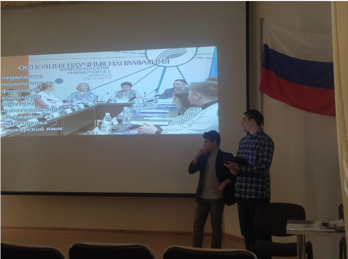 1 ноября студентами БГПУ им. М. Акмуллы (3 курс, групп ПРОПД-31-21 и ИВТКТ-31-21) в рамках производственной практики под руководством ст.преподавателя Габидуллиной С.М. были проведены профориентационные мероприятия для 30-ти студентов колледжа УКПЭД (3 и 4 курс). В ходе мероприятий была дана информация про Акмуллинский университет, студенты вуза рассказали о том, какие есть институты и факультеты, по каким направлениям могут обучаться студенты, а также о международном сотрудничестве. Познакомили с общежитиями и корпусами нашего университета, творческими объединениями университета. В конце ответили на вопросы студентов колледжа. Встреча прошла в максимально легкой и в дружеской форме.