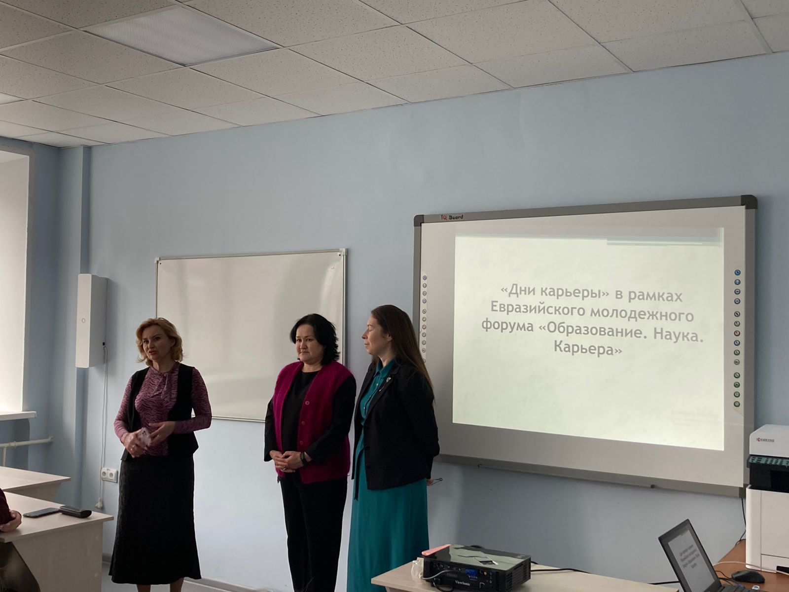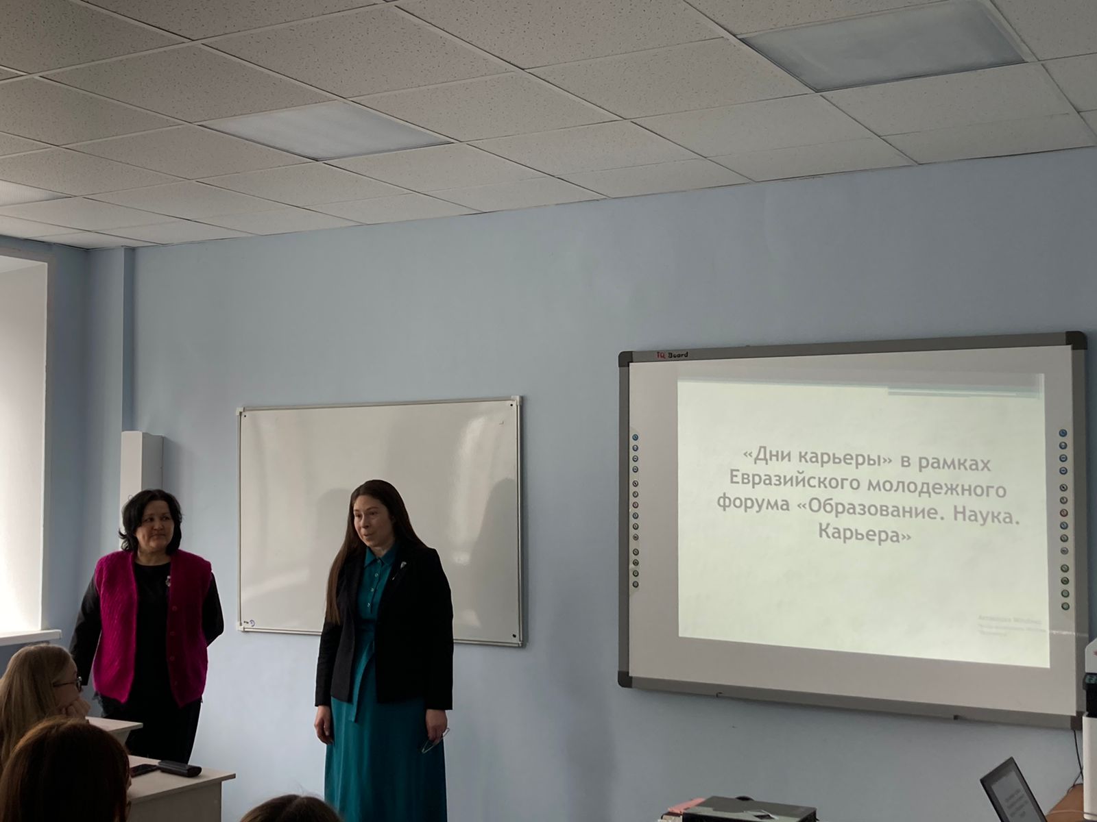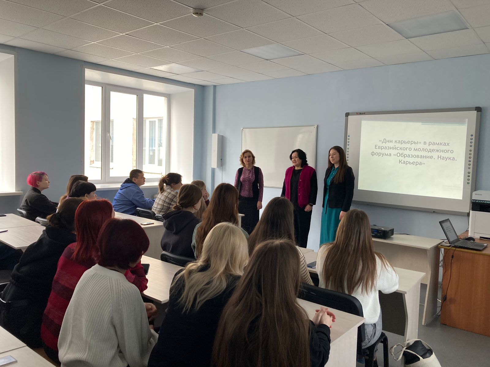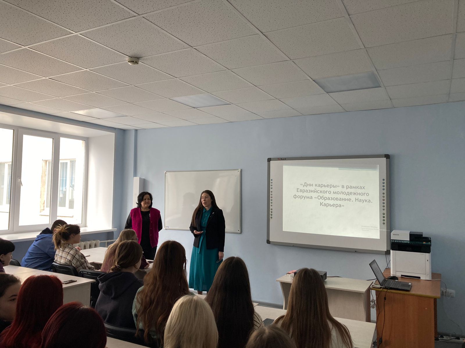 12 марта 2024 года доцент кафедры профессионального и социального образования Института педагогики А.Ф.Фазлыева провела мероприятие, посвященное Дню карьеры в рамках Евразийского молодежного форума «Образование. Наука. Карьера».