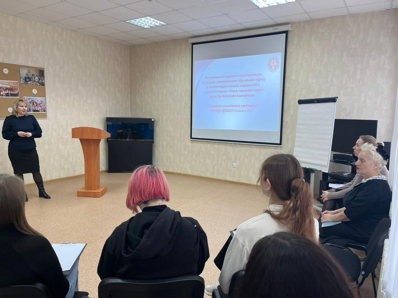 Многолетнее сотрудничество кафедры профессионального и социального образования Института педагогики с МБОУДО ЦППМСП «Семья» позволяет познакомить студентов, находящихся на начальном этапе подготовки к своей будущей профессии  со специалистами центра, имеющими за плечами большой профессиональный опыт. 09 апреля 2024 года студенты первого курса  Института педагогики, направления 44.03.02 – Психолого-педагогическое образование, направленность (профиль) «Психология и социальная педагогика, под руководством старшего преподавателя О.В. Вечкановой посетили семинар «Особенности работы специалистов с замещающими семьями» при МБОУДО ЦППМСП «Семья», на котором был представлен опыт работы с детьми-сиротами и детьми, оставшимися без попечения родителей. Также студенты познакомились с технологией работы по постинтернатному сопровождению выпускников.