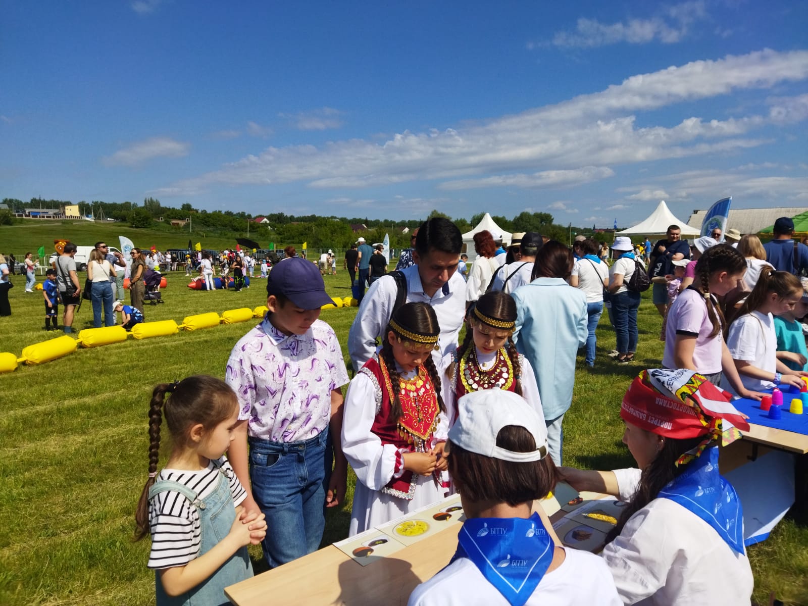 1 июня 2024 г вся страна праздновала Международный «День защиты детей». В этот день студенты кафедры профессионального и социального образования А.Д. Соломина, О.А. Жаркова, С.С. Базыкина, А.С. Мусабирова, А.А. Фаррахова, З.Я. Шаехова совместно с преподавателями кафедры доцентом А.Ф.Фазлыевой и  старшим  преподавателем  О.В.Вечкановой приняли участие в организации и проведении Международного  Дня защиты детей на территории комплекса «Уфимская крепость» деревни Локотки. Мероприятие прошло под названием «Детский сабантуй – 2024». Студенты и преподаватели представили насыщенную программу, состоящую из мастер-классов по плетению фенечек, изготовлению оригами, лепки из воздушного пластилина, раскрасок и дидактических игр.  И студенты и дети получили радость от совместного творчества.