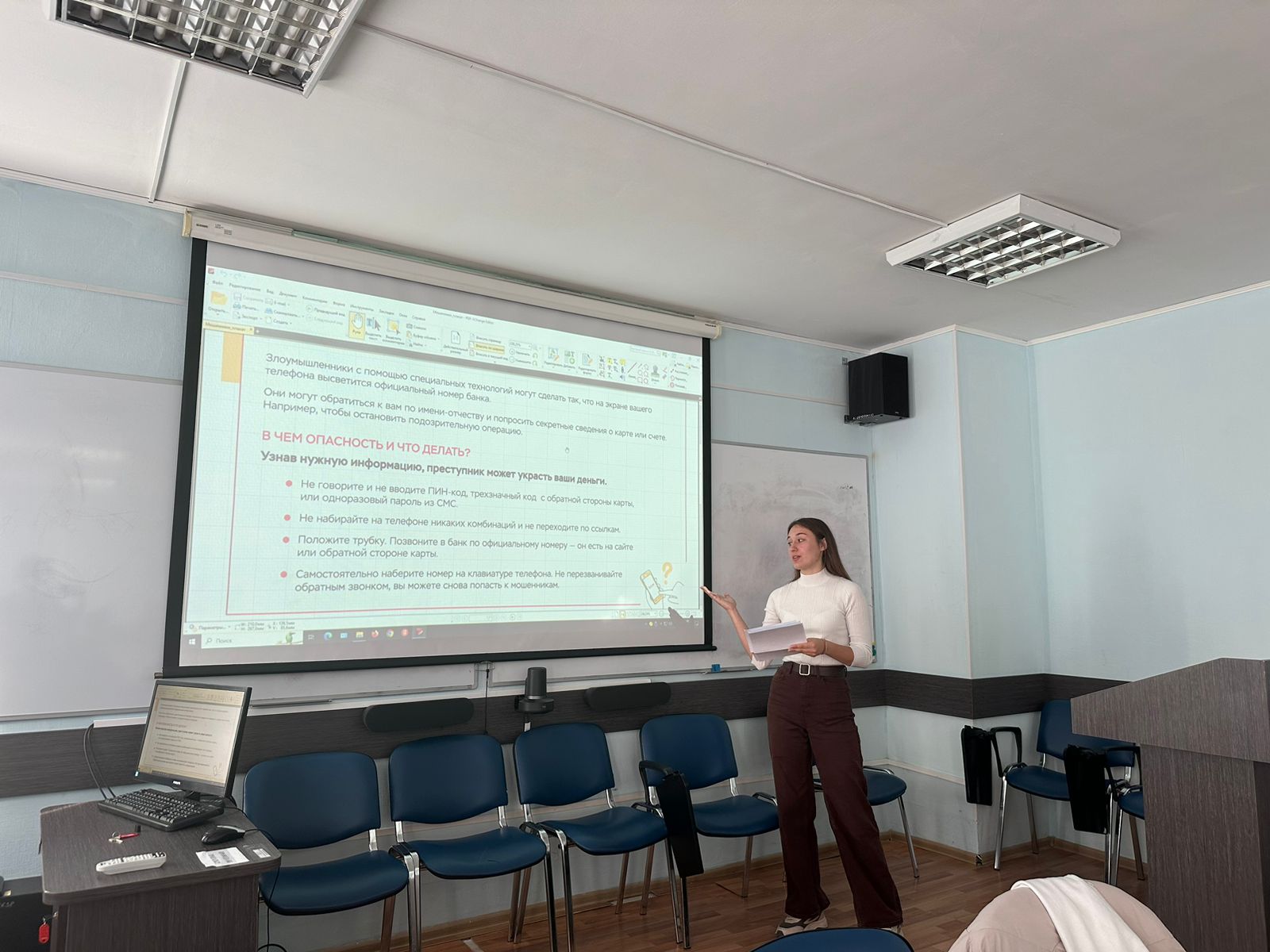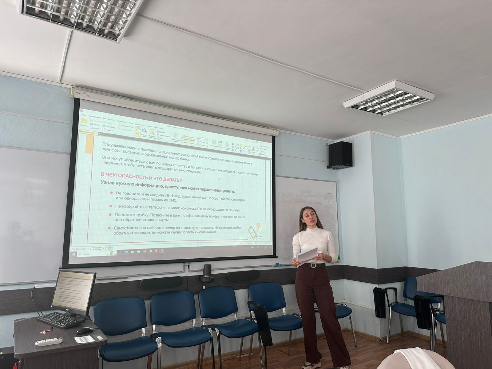 - Что делать, если я стал жертвой мошенничества? - Вопрос о действиях в случае потери денег или личной информации был крайне актуален. Студенты узнали, что необходимо немедленно обращаться в банк, блокировать карты и сообщать о факте мошенничества в правоохранительные органы.
