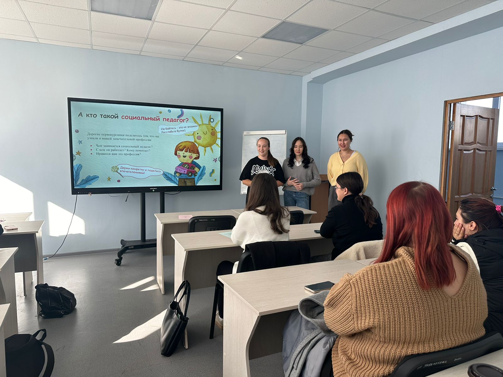 На кафедре Профессионального и социального образования, по доброй традиции, состоялось долгожданное событие – посвящение первокурсников направления "Психология и социальная педагогика" в социальные педагоги! Студенты выпускного курса, под руководством старшего преподавателя  О.В. Вечкановой, подготовили для своих младших коллег увлекательную викторину, в ходе которой прошли через ряд вопросов, касающихся профессии социального педагога.