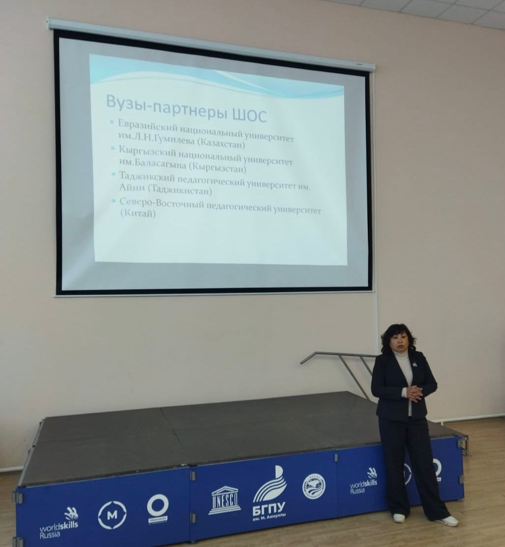 Вахидова Л.В. рассказала о достоинствах программы двудипломного образования «Педагогика и психология высшего образования», которую реализует кафедра профессионального и социального образования совместно с Евразийским национальным университетом им. Л.Н. Гумилева, а также о 10 причинах получения образования в России.