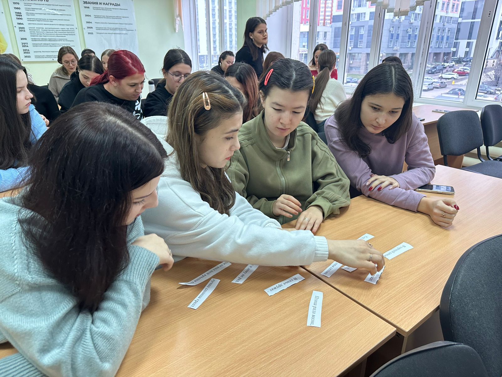 Студенты активно обсуждали важные аспекты семейных отношений, делились своими мыслями и взглядами на эту тему. В начале мероприятия они получили практическое задание — составить цитаты о семье и высказать свое мнение. Один из студентов отметил: - «Семья — это не только кровные узы, но и поддержка, которую мы даем друг другу в трудные времена». Это высказывание стало отправной точкой для дальнейших обсуждений.