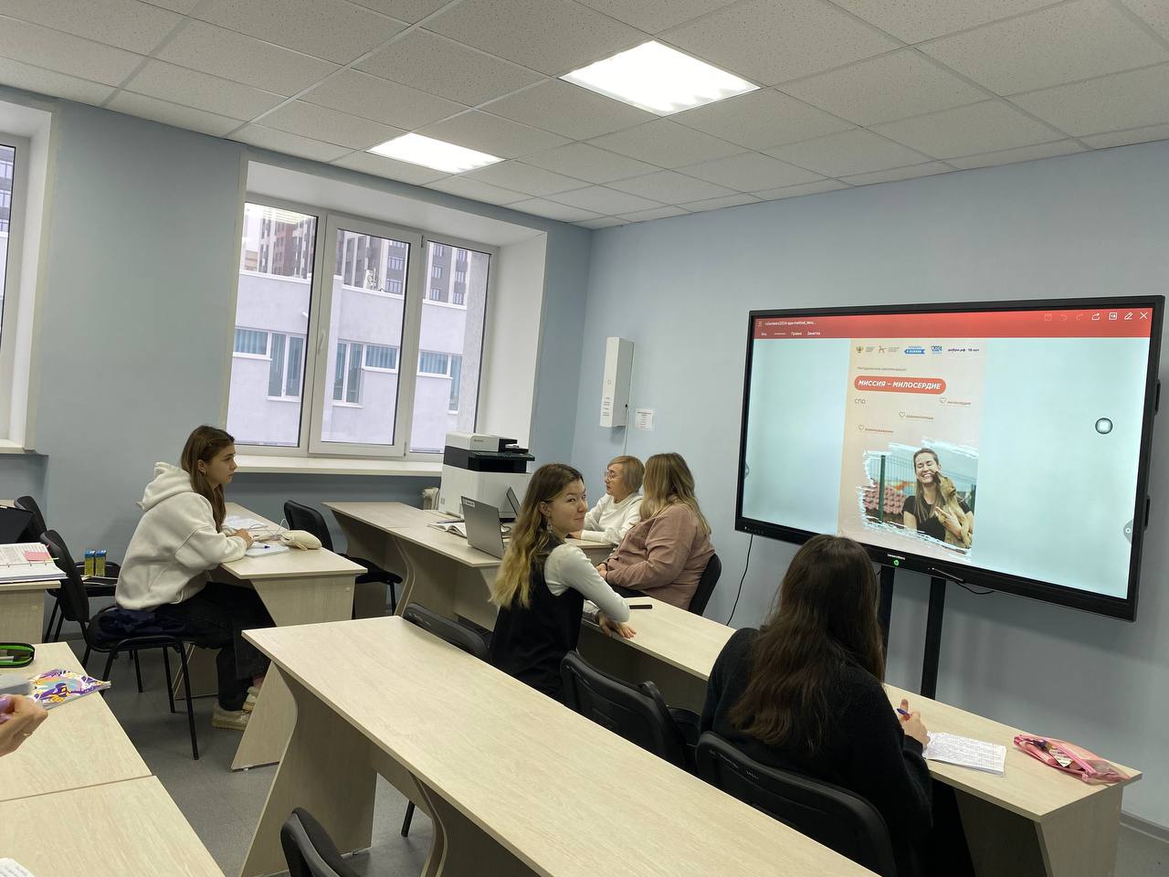 В связи с приближающимся Днем волонтера, который отмечается 5 декабря, мы также обсудили Международный форум гражданского участия #МЫВместе, который пройдет с 4 по 8 декабря. Студенты посмотрели видеоролик «10 лет АВЦ», после чего активно обсуждали деятельность, представленную в видео, и делились своими мыслями о значении волонтерства.