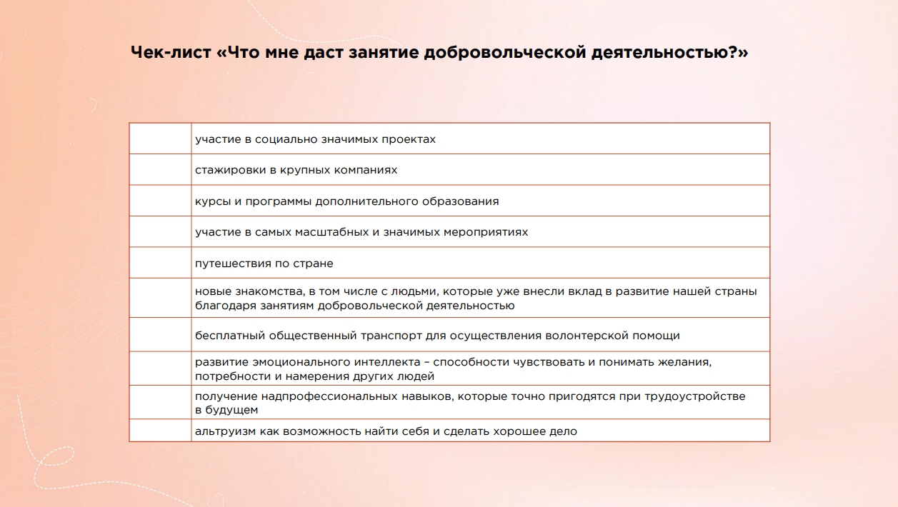 В завершение занятия учащиеся заполнили чек-лист рефлексии, отметив пункты, которые их особенно заинтересовали. Это позволило каждому участнику обдумать полученные знания и их практическое применение.