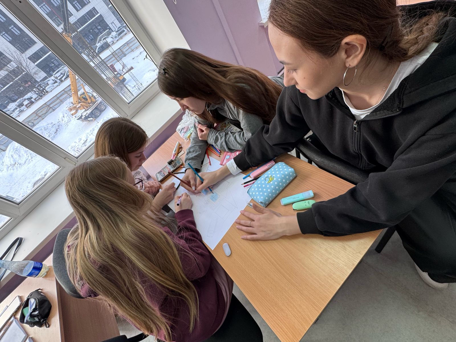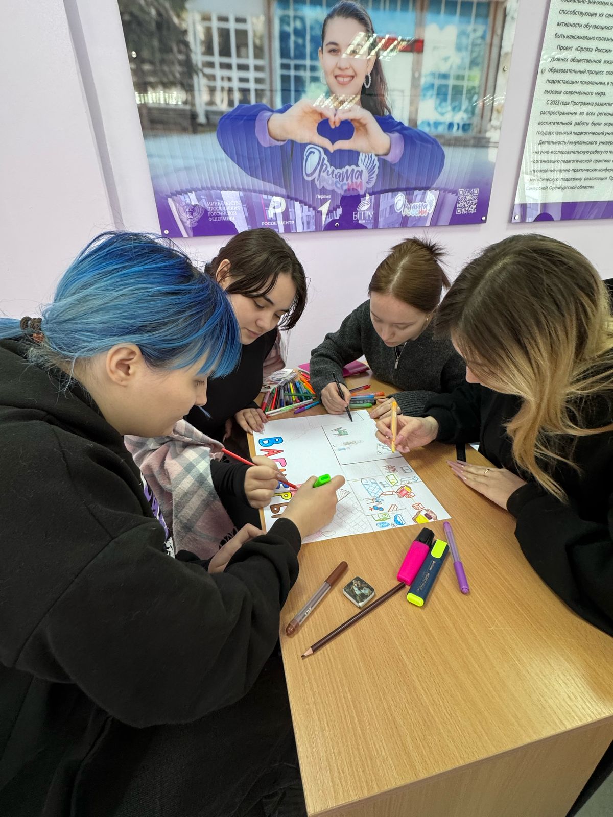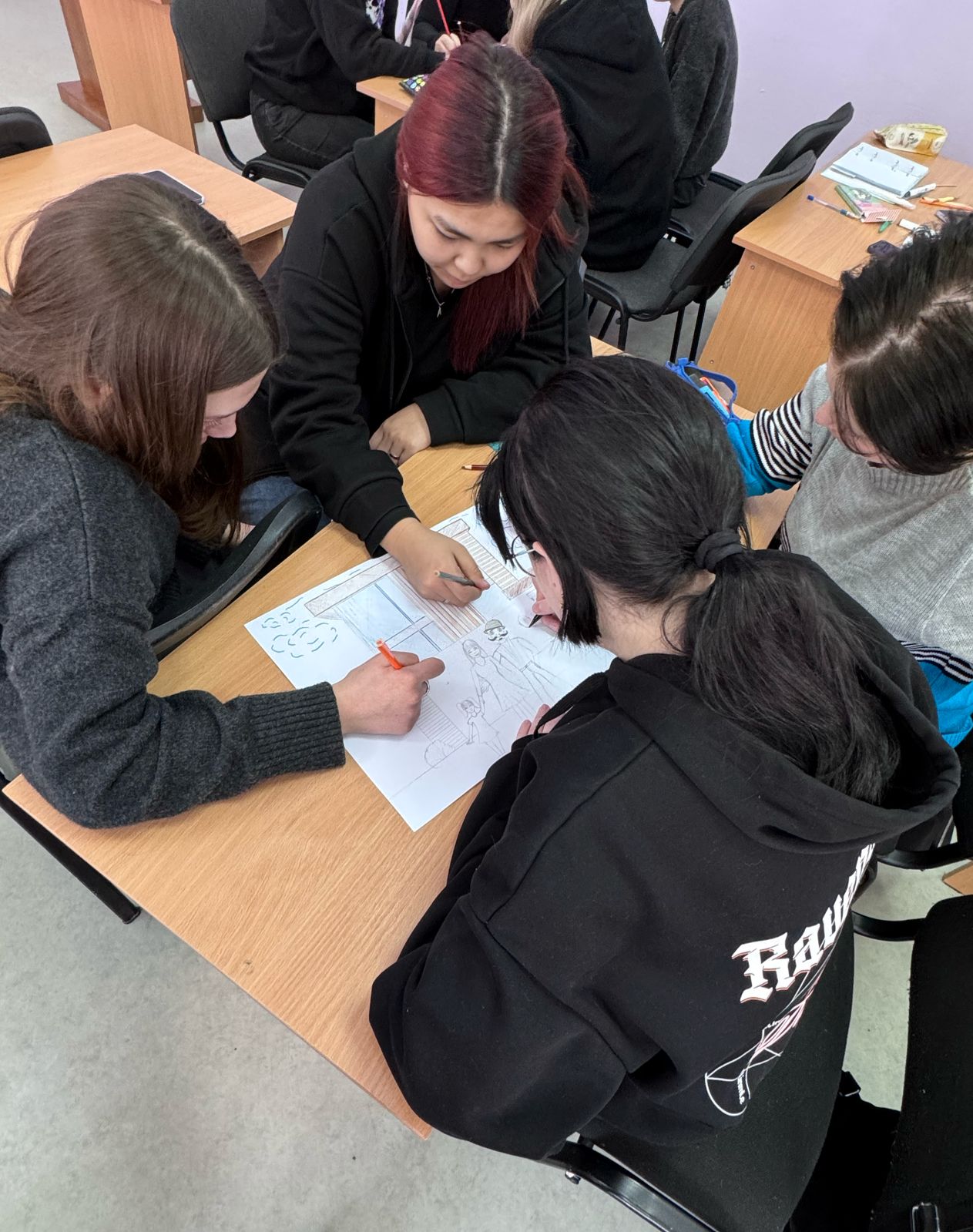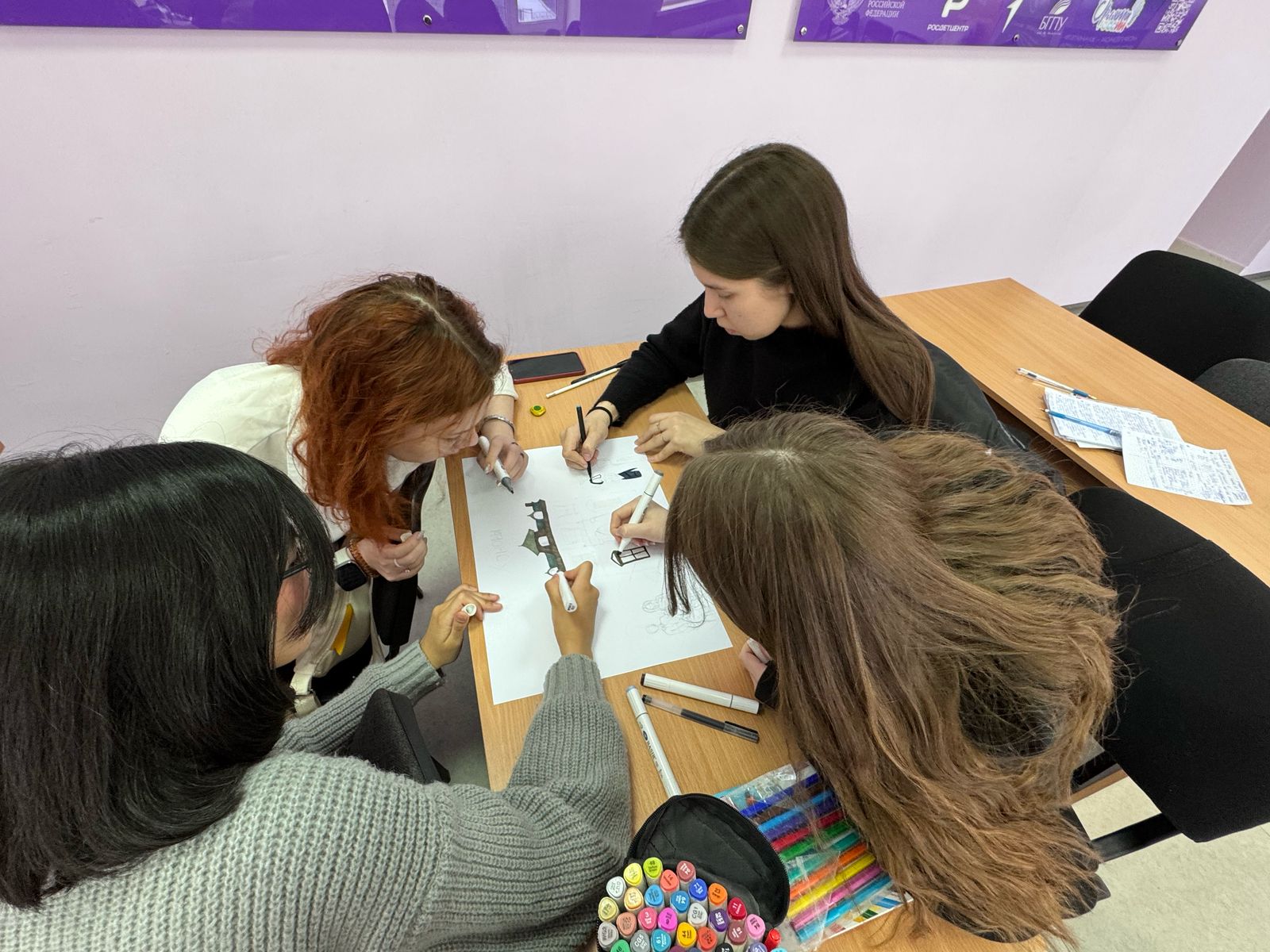 После работы с ассоциациями студенты были разделены на группы. В командах они создали визуальные образы своей идеальной семьи, используя различные материалы для творчества: бумагу, краски, фломастеры и даже элементы коллажа. Этот этап позволил участникам проявить свои креативные способности и совместно обсудить важные для них ценности и традиции. Работая в команде, студенты учились слушать друг друга, находить компромиссы и создавать общий образ, который отражал бы мечты каждого участника.