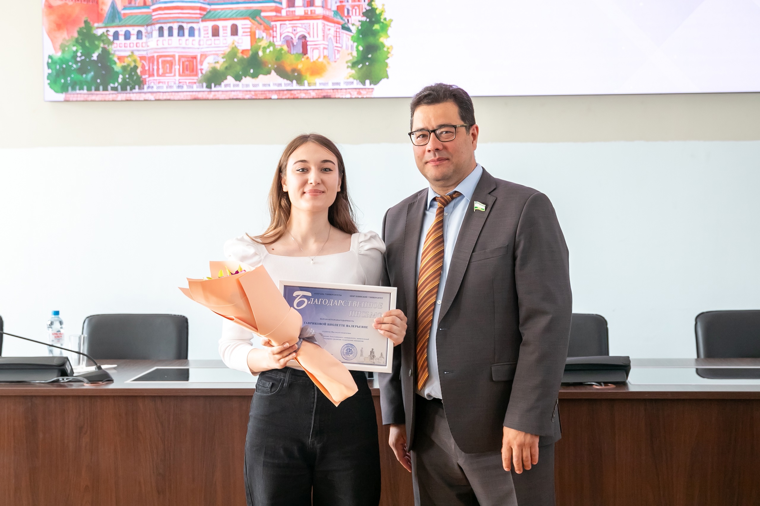 Также была отмечена студентка 4 курса направления подготовки 44.03.02 «Психолого-педагогическое образование», направленность (профиль) «Психология и социальная педагогика» Гаврикова Виолетта Валерьевна. Она получила благодарственное письмо Акмуллинского университета за личный вклад в поддержку развития студенческих инициатив, выдающиеся успехи в общественной деятельности и существенное влияние на формирование молодежной политики.