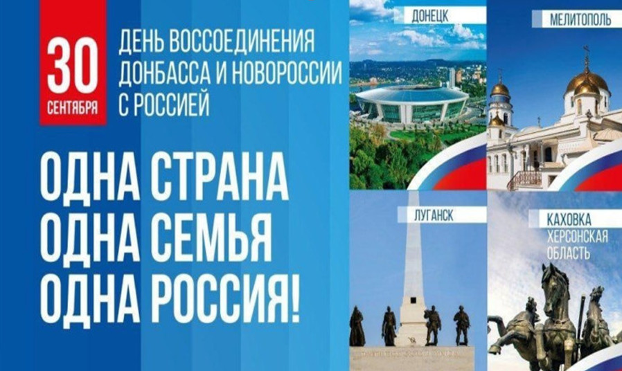30 сентября - День воссоединения Донецкой Народной Республики, Луганской Народной Республики, Запорожской области и Херсонской области с Российской Федерацией