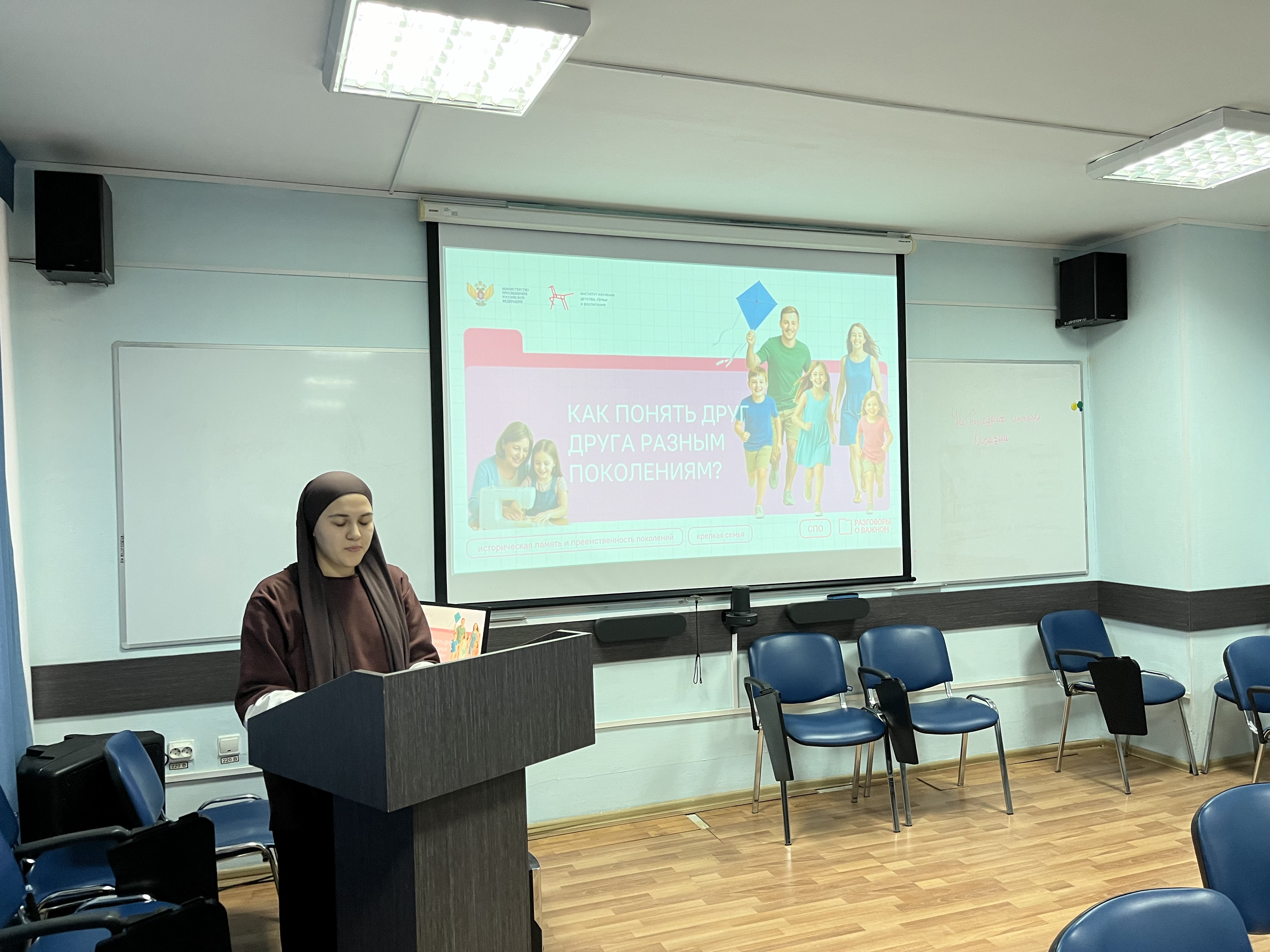 Чтобы научиться строить мосты там, где возникает разрыв, доцент кафедры профессионального и социального образования, к.п.н. Екатерина Владимировна Трофимова, и тьютор, студентка 4-го курса Гатауллина Загида, провели для второкурсников «Разговор о важном» на тему «Как понять друг друга разным поколениям».
