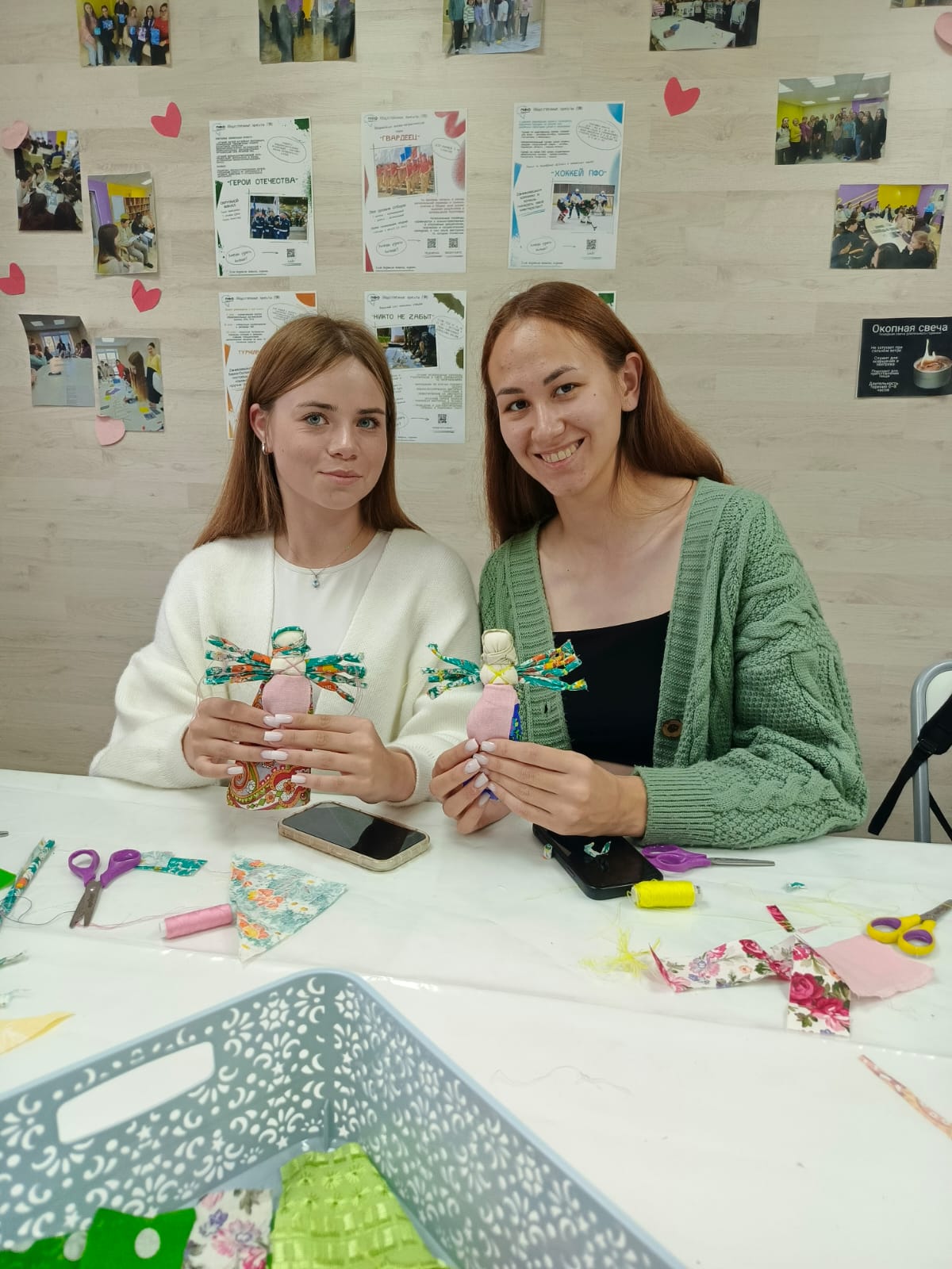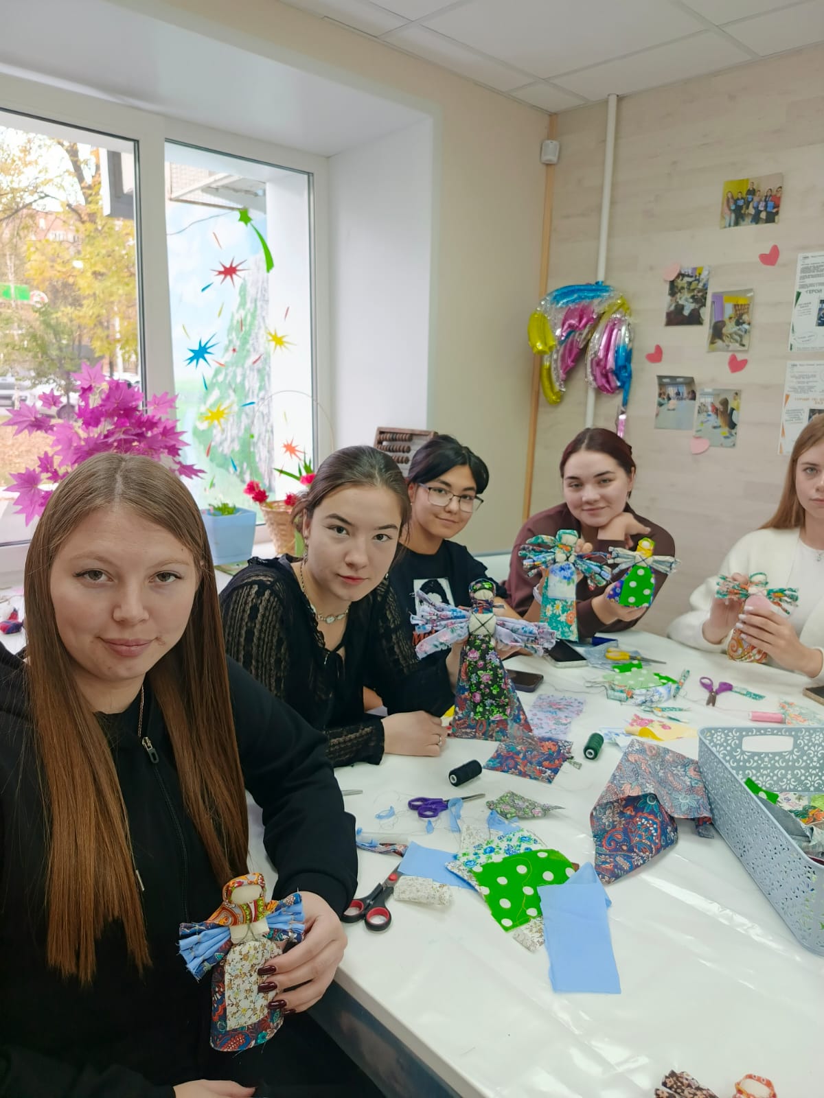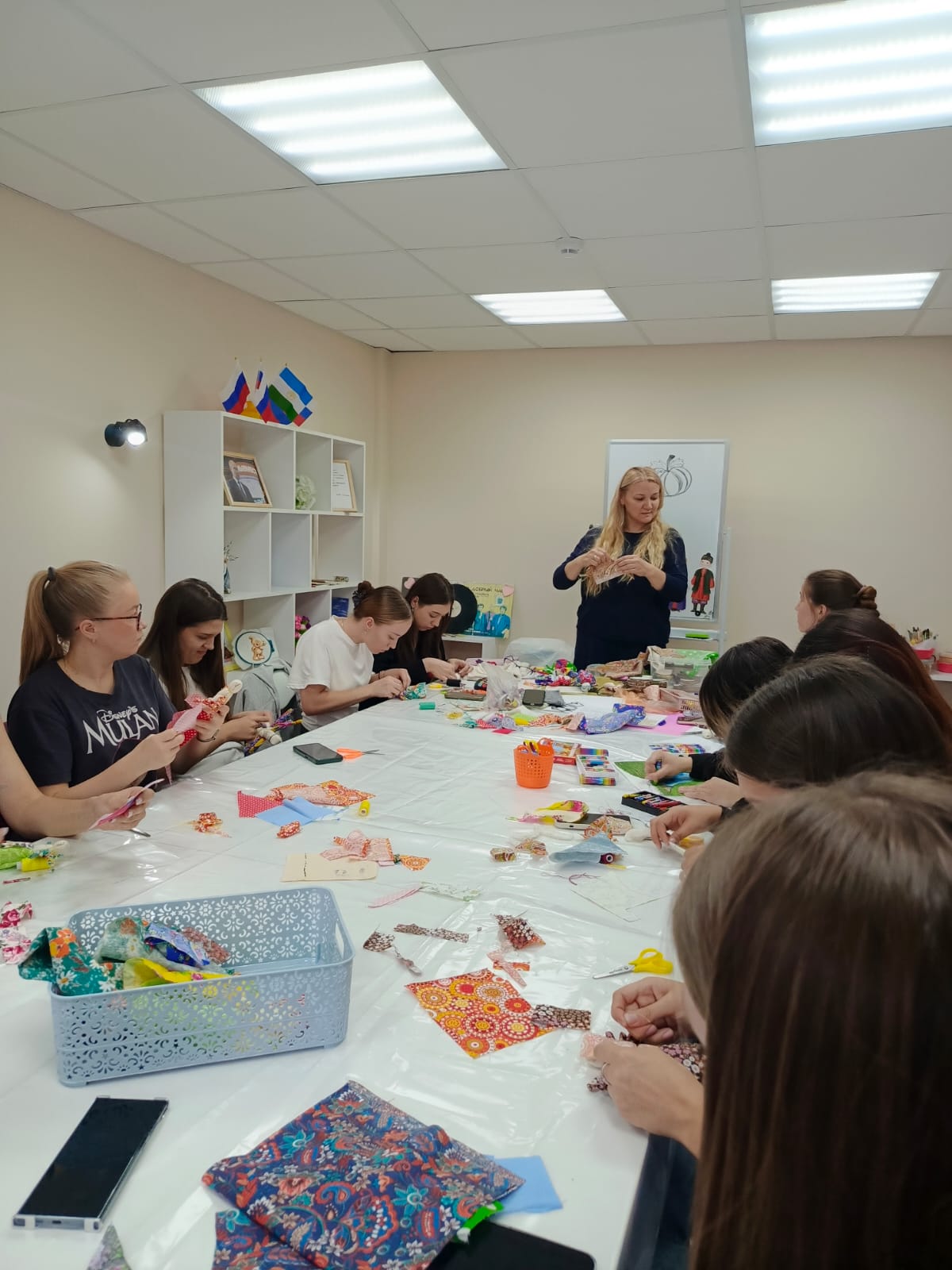 Под чутким руководством Елены Геннадьевны, руководителем молодежного клуба "Точка притяжение", участники мастер-класса своими руками создавали своих куколок, вкладывая в них не только умение, но и добрые мысли и пожелания. Работа с натуральными тканями, нитями и традиционными техниками позволила каждому почувствовать связь с прошлым и исконной народной культурой.