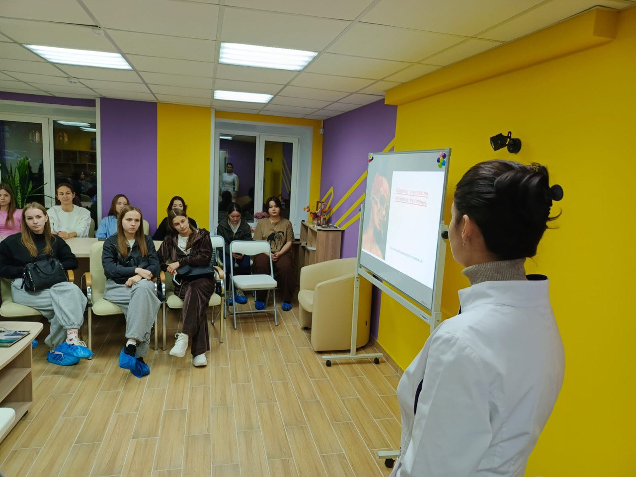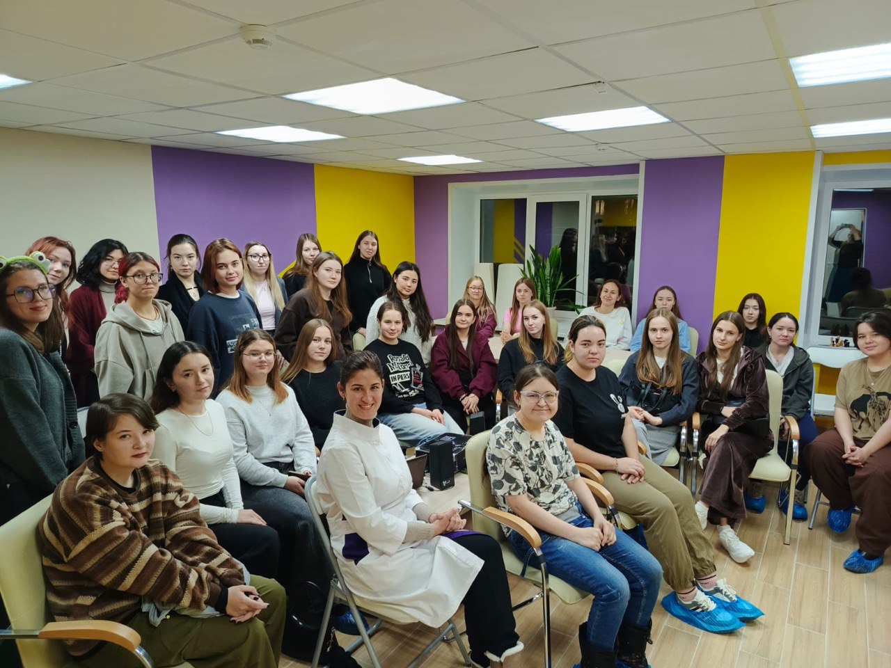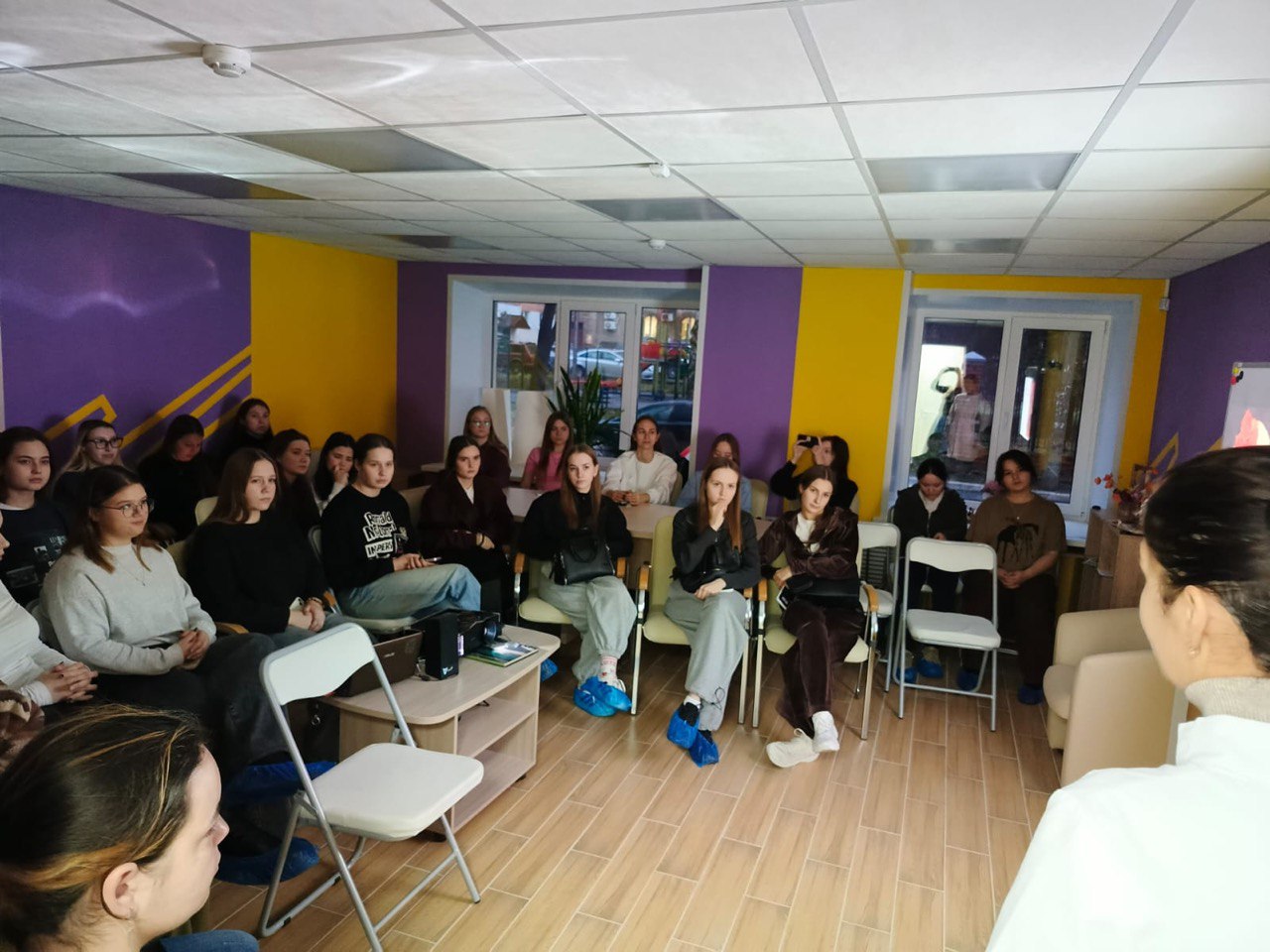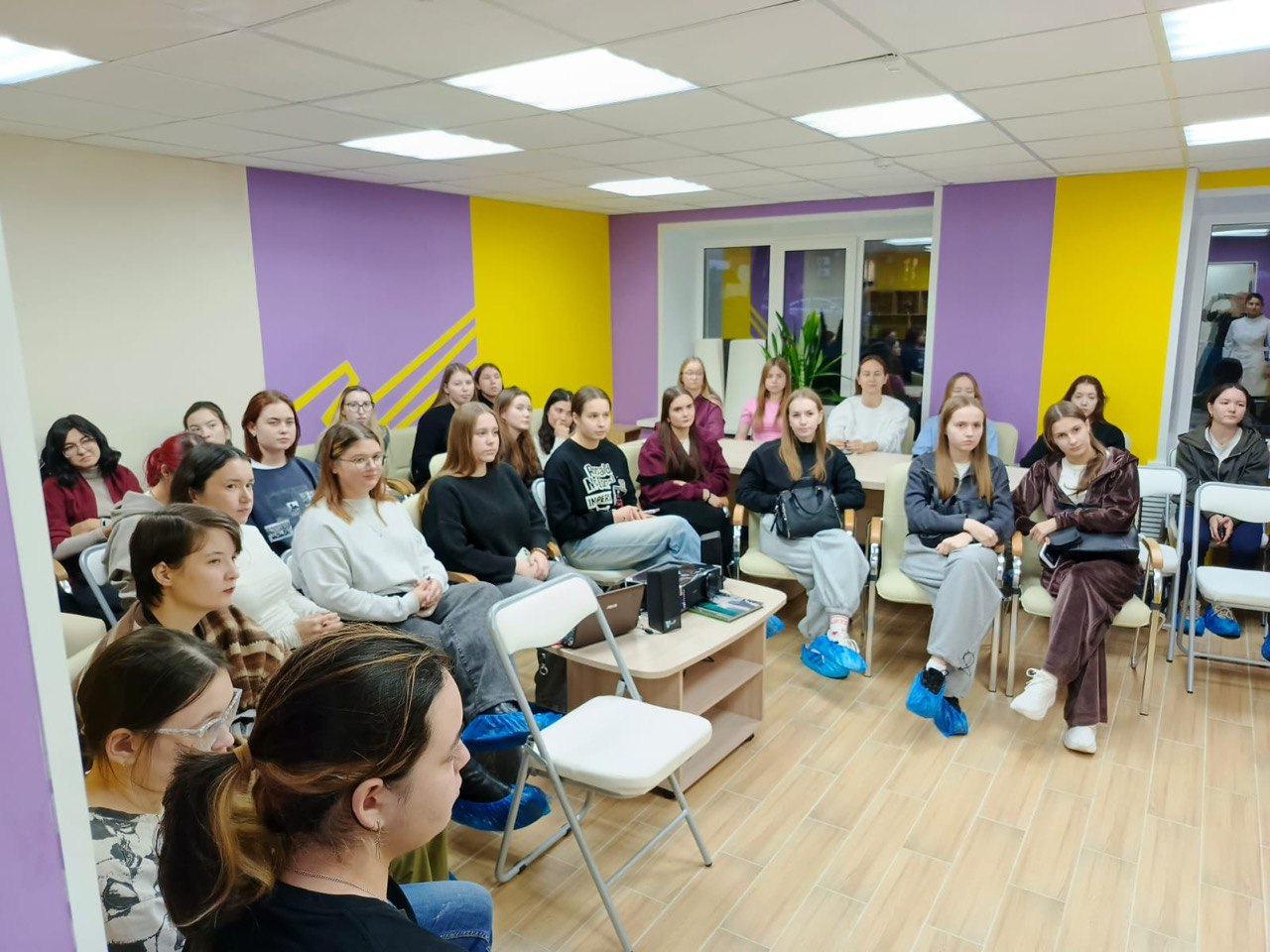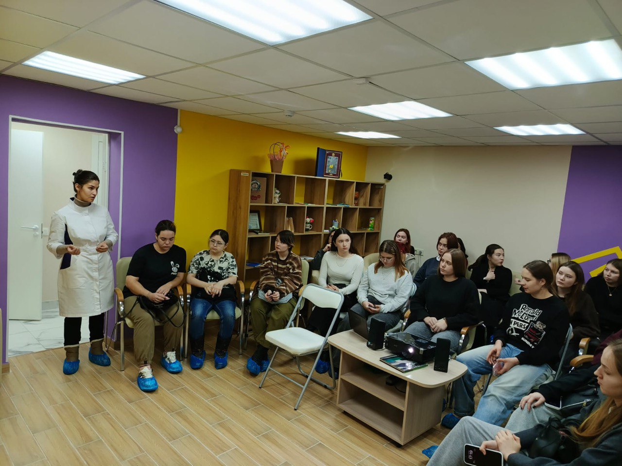 18 ноября 2025 года студенты 3 курса группы ППОСП-31-23 Института педагогики направления 44.03.02 – Психолого-педагогическое образование, профиль «Психология и социальная педагогика», совместно с группой ППДП-21-24 под руководством ст. преподавателя О.В. Вечкановой кафедры профессионального и социального образования были приглашены в Молодежный клуб «Улыбка» на встречу со специалистом Республиканского медико-генетического центра Юлдашевой Альфией Маратовной.