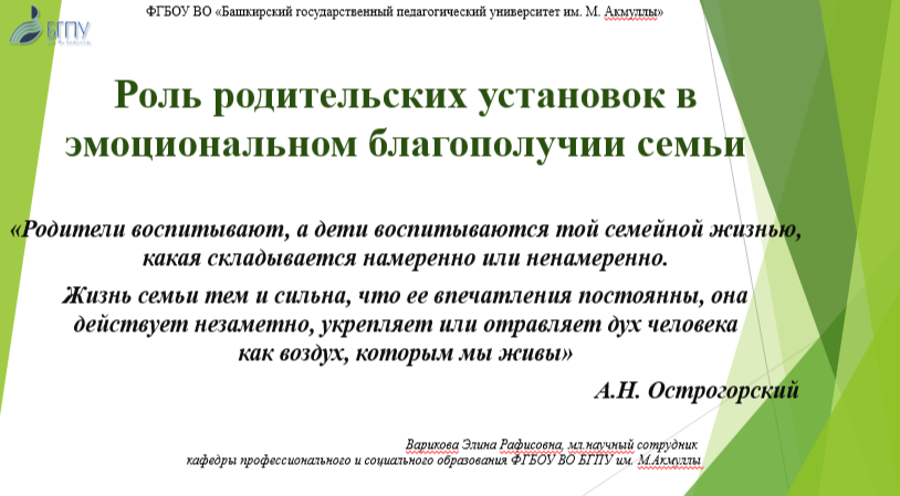 В рамках реализации ГЗ «Модель родительского просвещения» состоялся вебинар для родителей на тему «Роль родительских установок в эмоциональном благополучии семьи»