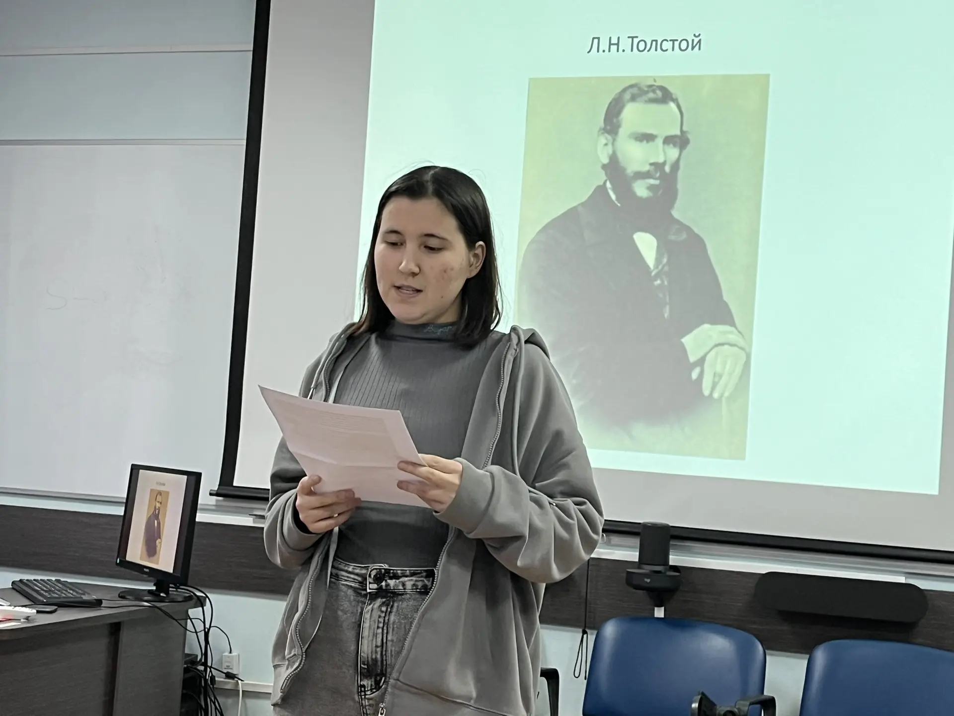 Студенты первокурсники представили доклады о великих педагогах и мыслителях, чьи идеи формируют личность: рассказали об Антоне Макаренко и дисциплине через коллектив; познакомили с психологией подвига Льва Выготского; напомнили о гражданском мужестве Александра Радищева; и завершили  цикл рассказом о Льве Толстом как о народном педагоге.