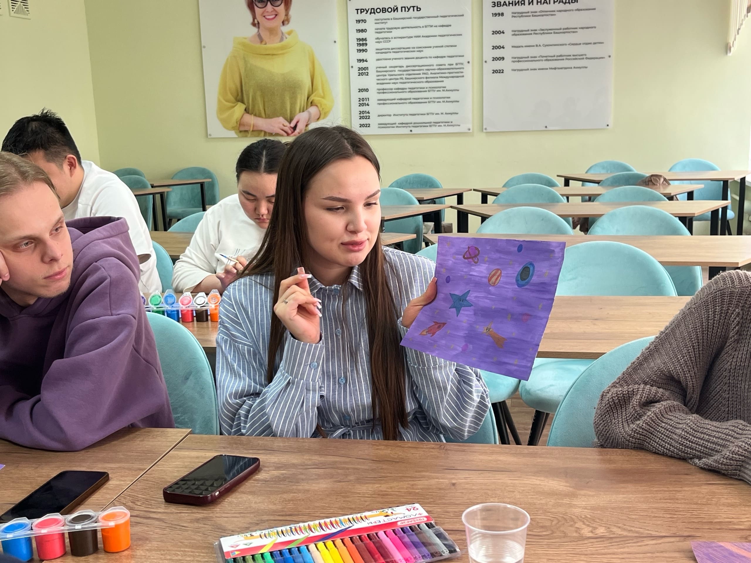 Особый отклик у студентов вызвала техника «Голос из центра», где каждый написал послание от лица своего сердца или главной звезды представителям других галактик. Примеры звучали так: «Я здесь.  Даже когда вокруг темнота, я продолжаю светить».