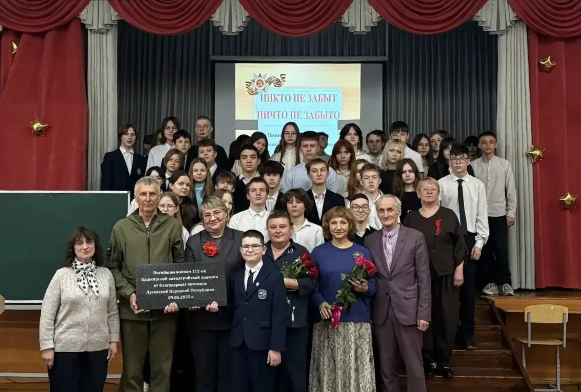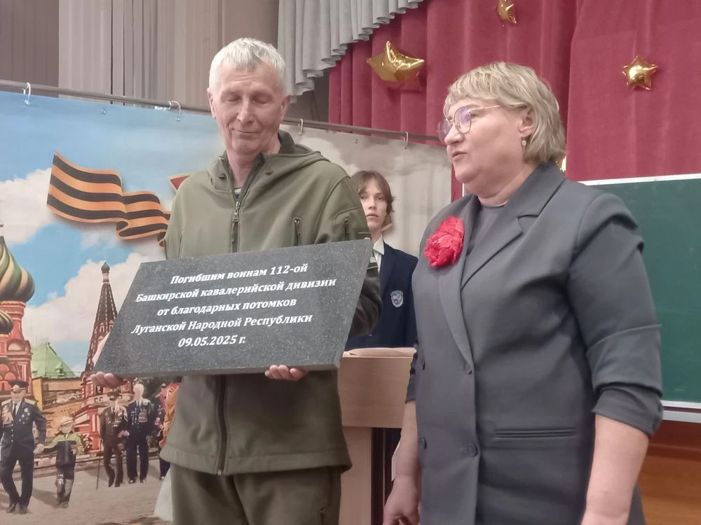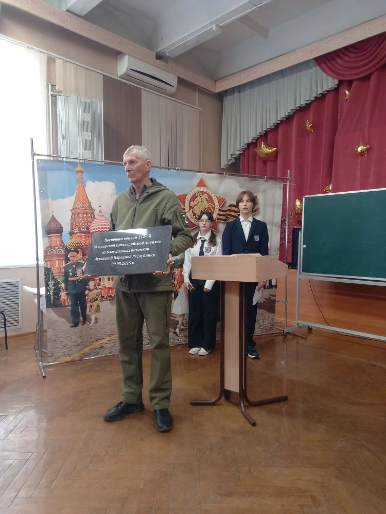 Обучающиеся школ-побратимов знакомятся с историей, памятниками культуры и традициями друг друга на внеурочных занятиях и в проектной деятельности, на встречах с интересными людьми. И сегодня ученики 109 школы читали стихи поэтов - солдат Великой Отечественной войны, стихи о детях войны, вспоминали о легендарной Шаймуратовской конной дивизии, славные ратные дела которой хорошо известны в Луганске. Представители Луганска - семейная чета Герцовских -передала с дар школьному музею памятную гранитную табличку с надписью "Погибшим воинам 112-ой Башкирской кавалерийской дивизии от благодарных потомков Луганской Народной Республики".