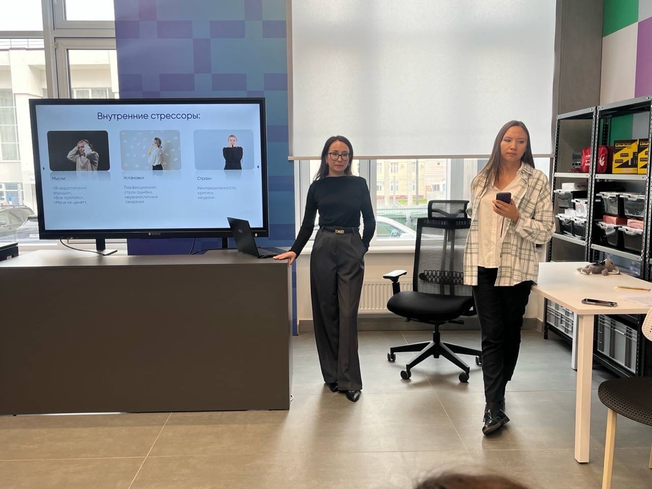 Тренинг по стресс-менеджменту провели два эксперта: Лилия Абдрахманова (экономист, предприниматель, бизнес-тренер) и Розалия Трофимова (юрист, бизнес-тренер, специалист Агентства Республики Башкортостан по развитию малого и среднего предпринимательства). Мероприятие началось с создания дружеской атмосферы: разминка «Имя + качество» помогла участникам познакомиться и настроиться на открытую доверительную волну. Затем ведущие перешли к теоретической части, где обсудили, что такое стресс и его виды — эустресс (полезный, мотивирующий) и дистресс (вредный, изматывающий), а также выделили внутренние и внешние стрессоры, то есть факторы, вызывающие напряжение извне и внутри нас. Особое место заняло практическое упражнение «Камаз», которое помогло понять, что стрессовые факторы зачастую живут внутри каждого — это наши реакции, мысли и эмоции; осознание этого — важный шаг к управлению своим состоянием. Для закрепления материала использовали упражнение «Поиск возможностей»: этот метод учит сосредотачиваться на решениях и положительных аспектах ситуации, что снижает уровень тревоги и развивает позитивное мышление. Чтобы снять напряжение, провели разминку «Повтори движение соседа», которая позволила активизироваться, повысить настроение и укрепить дружескую атмосферу. Особое внимание уделялось методам снижения стресса по трём основным направлениям: физиологическим (дыхательные практики, релаксационные техники), психологическим (переоценка ситуации, работа с внутренним диалогом) и поведенческим (смена привычек, осознанное поведение). Работая над внутренней игрой, участники освоили пять техник, направленных на победу над стрессом внутри себя, что помогает укреплять эмоциональную устойчивость и находить внутренний баланс. В завершение мероприятия прошло обсуждение, обмен впечатлениями и практическими рекомендациями, что дало участникам возможность закрепить полученные знания и подготовить их к эффективному применению в повседневной жизни.