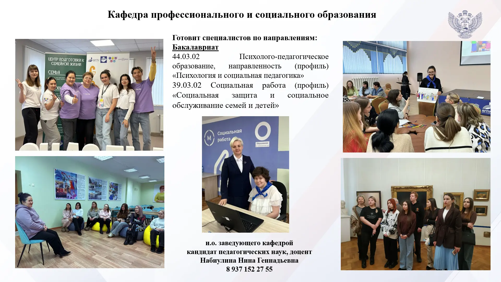 18 апреля 2026 года в БГПУ им.М.Акмуллы прошёл День открытых дверей. Кафедра профессионального и социального образования презентовала направления и профили обучения в рамках онлайн-подключения с педагогическими колледжами города Уфы и Республики Башкортостан. Целевая аудитория - студенты выпускных групп колледжей, их родители, кураторы групп. Во время летней приёмной кампании выпускникам предстоит сделать выбор направления своего дальнейшего обучения на бакалавриате в вузе.